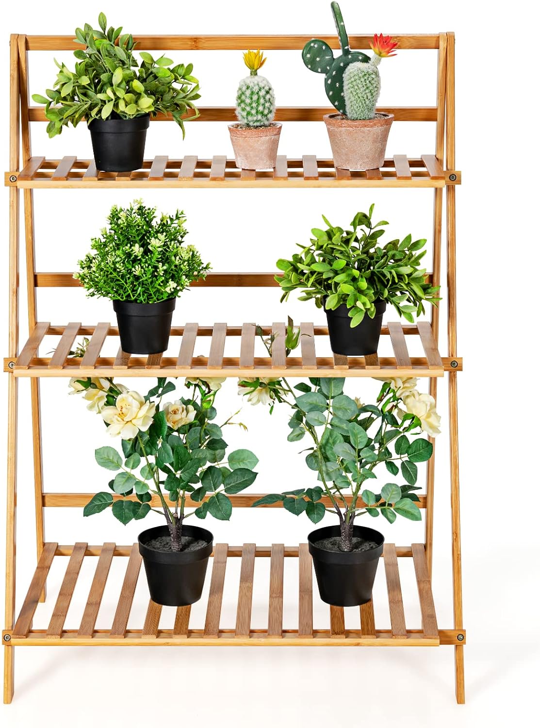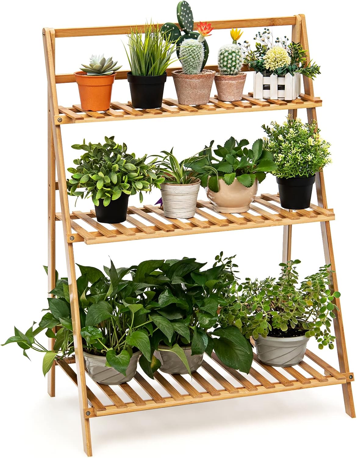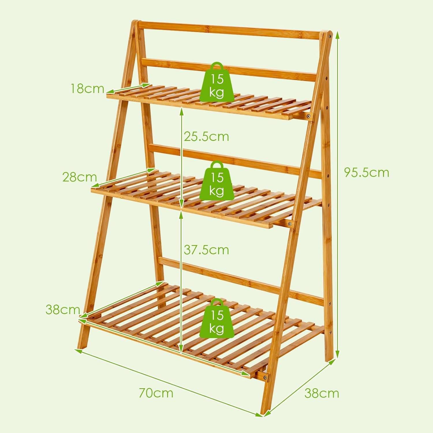 RELAX4LIFE Blumenständer Klappbar, Pflanzenregal 3-stufig, Blumenleiter aus Bambus, Freistehendes Bl