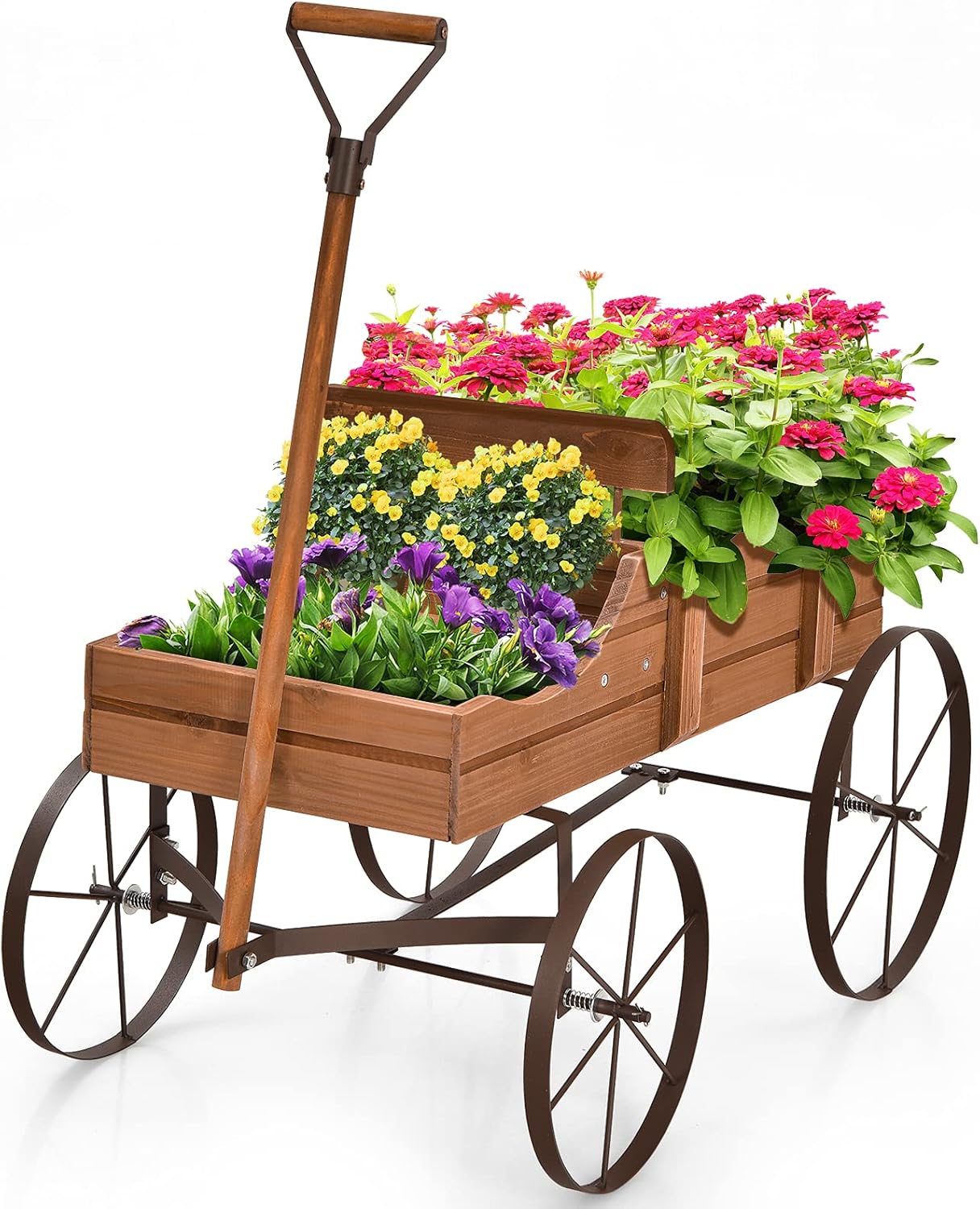 • ★ Breites Einsatzgebiet ★ Der schöne und praktische Holzwagen ergänzt die Innen- und Aussendekoration und kann zur Aufbewahrung von Gegenständen und zur Aufzucht von Blumen und Pflanzen verwendet werden. Der Holzwagen ist daher sehr gut für den