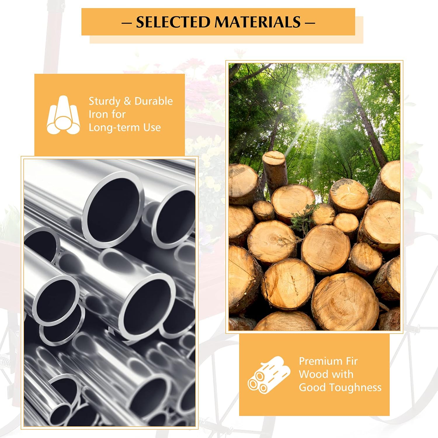 • ★ Leicht zu bewegen ★ Der Blumenwagen ist mit vier Rädern aus Eisen ausgestattet, sodass er z. B. im Garten leicht bewegt werden kann. Der Blumenwagen ist ausserdem mit einem Griff ausgestattet, der nach oben und unten gezogen werden kann, sodass