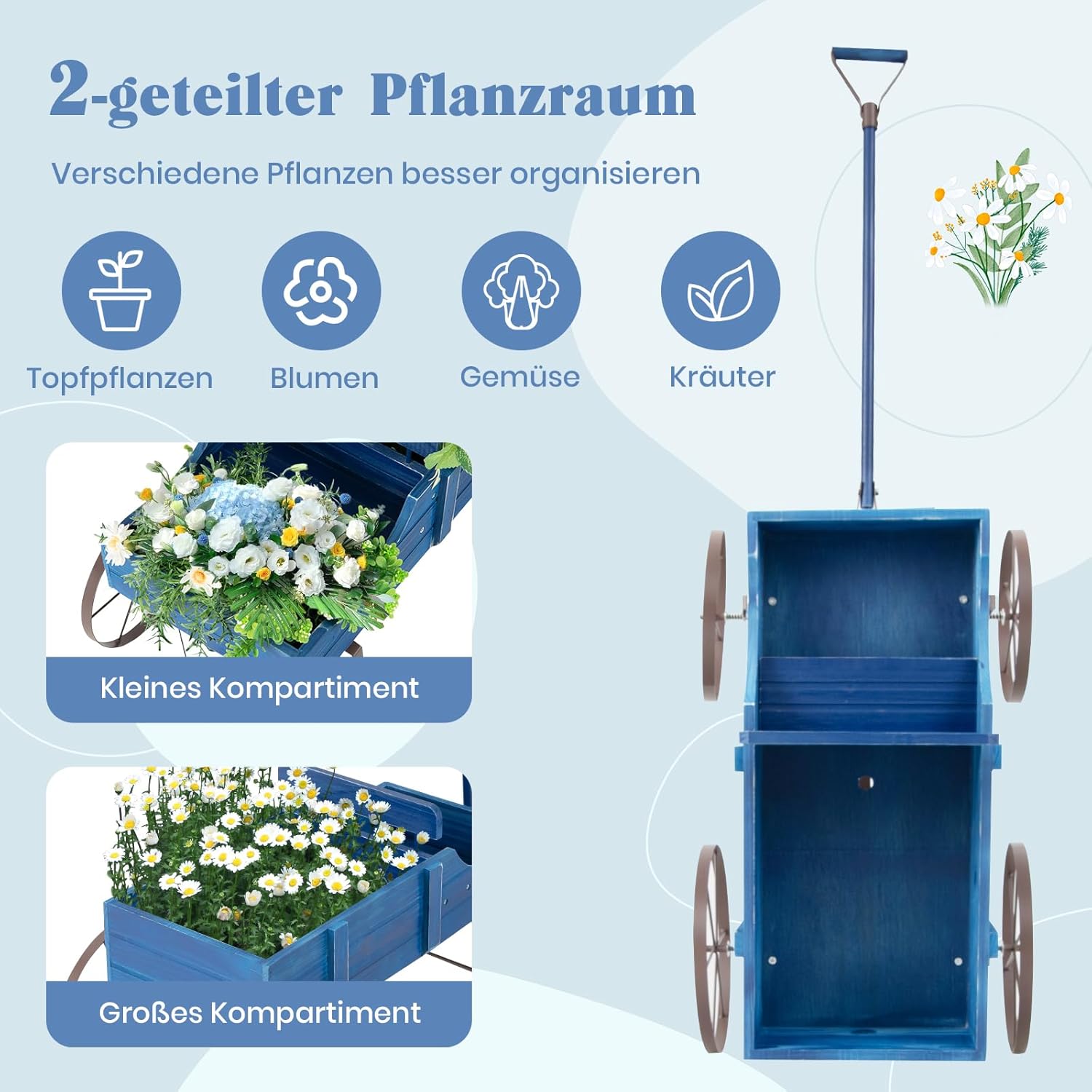 - ★ Breites Einsatzgebiet ★ Der schöne und praktische Holzwagen ergänzt die Innen- und Aussendekoration und kann zur Aufbewahrung von Gegenständen und zur Aufzucht von Blumen und Pflanzen verwendet werden. Der Holzwagen ist daher sehr gut für den
