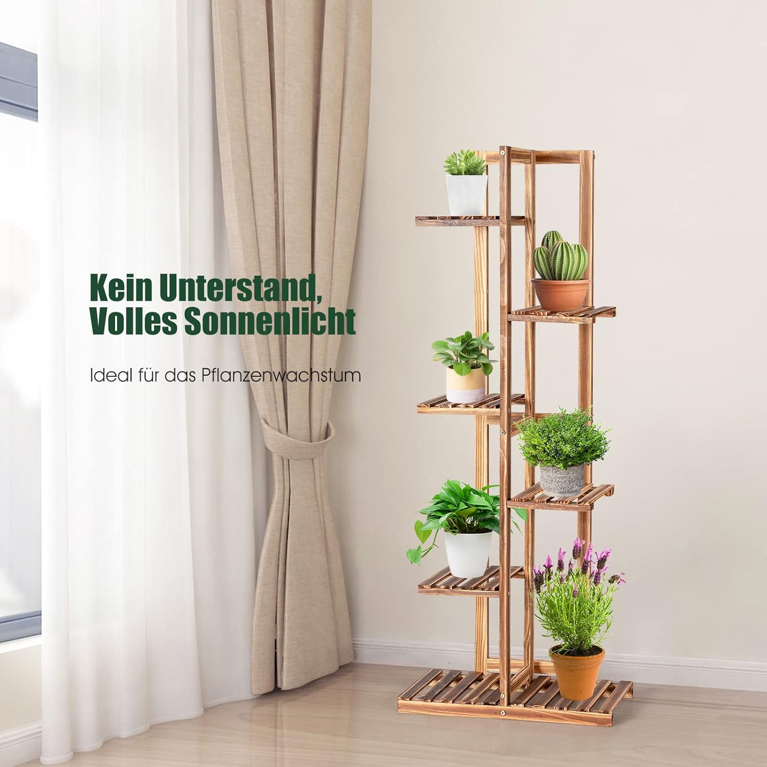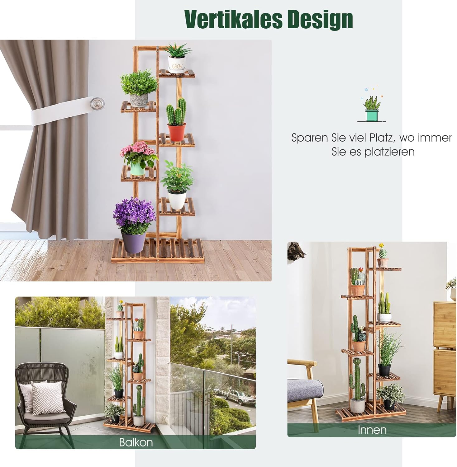 • ★ 100% natürliches massives Kiefernholz ★ Die Blumentreppe besteht aus natürlichem Bambus, der sehr stark und langlebig ist. Die Tragfähigkeit jeder Ablage beträgt 5 kg. Dank der Karbonisierung bei hoher Temperatur kann das Pflanzenregal