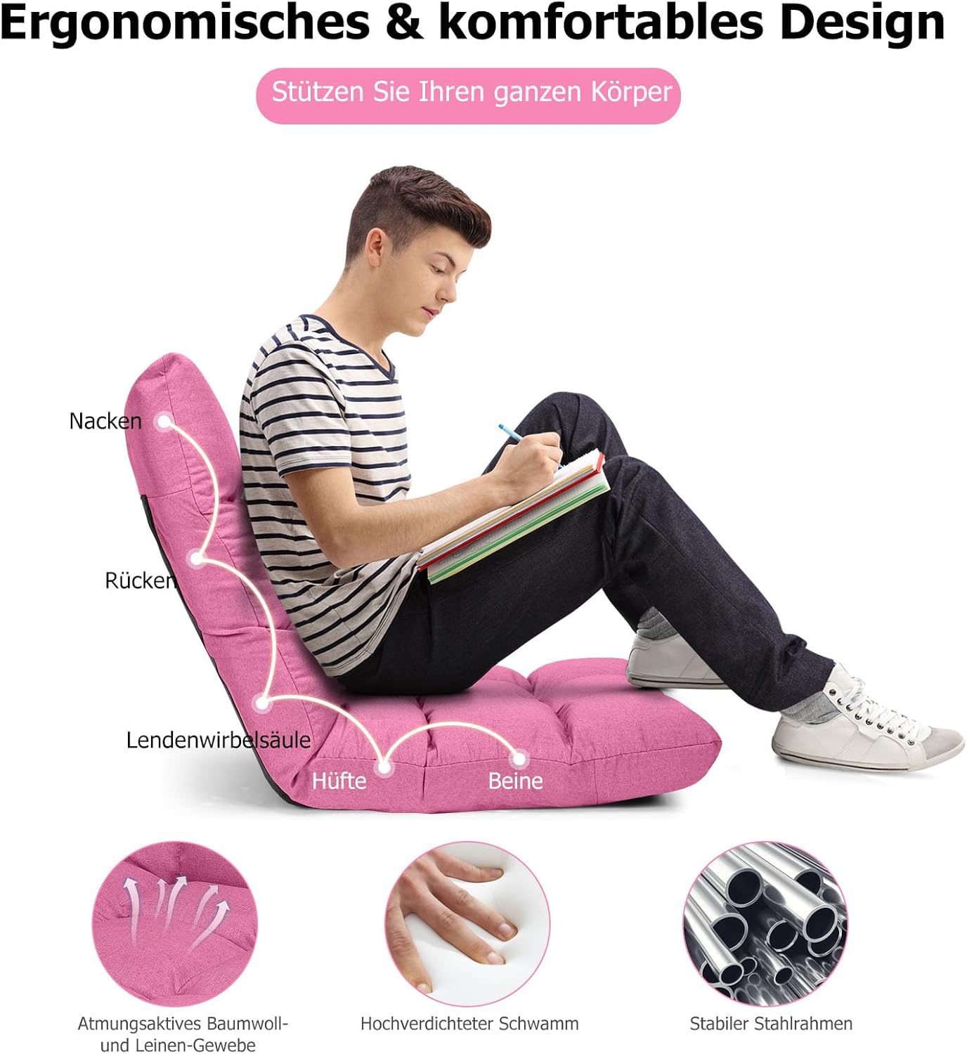 • ★Sitzbequemlichkeit★ Dieser Bodenstuhl hilft Ihnen dabei, eine gesunde und bequeme Sitzposition beizubehalten. Er kann den Druck auf seinem Rücken entlasten und Ihnen den besten Komfort bieten. Darüber hinaus können Sie sich durch die Weichheit