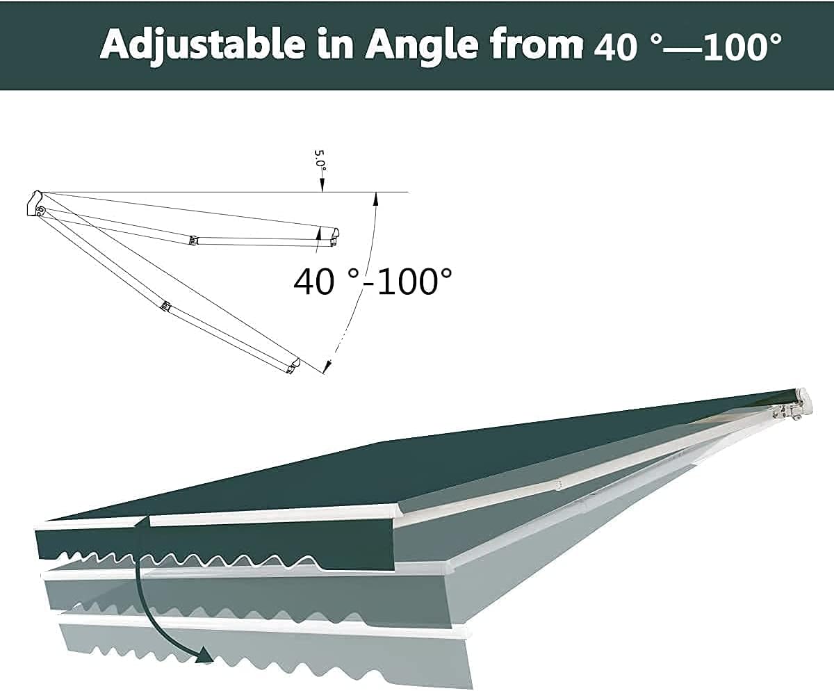 • ★ Einziehbares Design mit Handkurbel ★ Mit Hilfe der Handkurbel können Sie Gelenkarmmarkise einfach erweitern oder zusammenziehen. Die 120 cm lange Handkurbel ist benutzerfreundlich. Die Neigung der Markiseoberfläche kann zwischen 40° und 100°