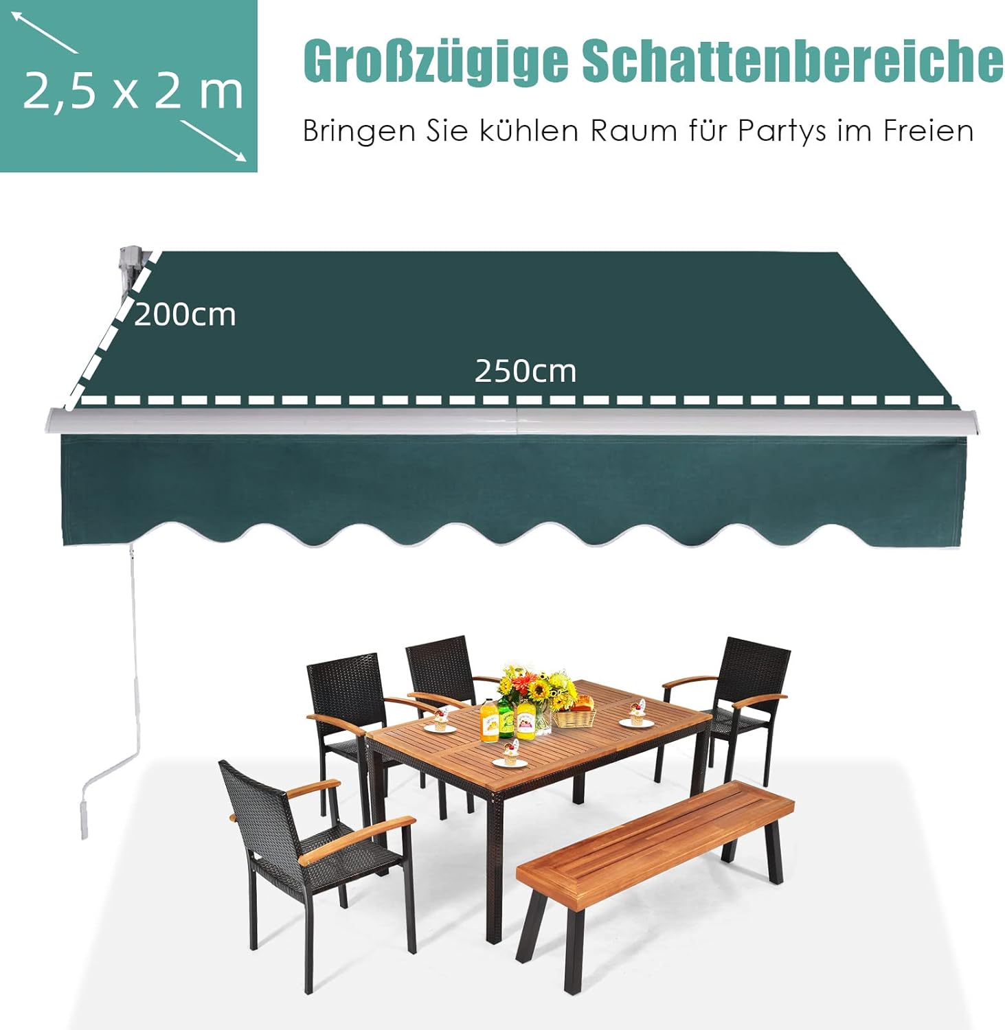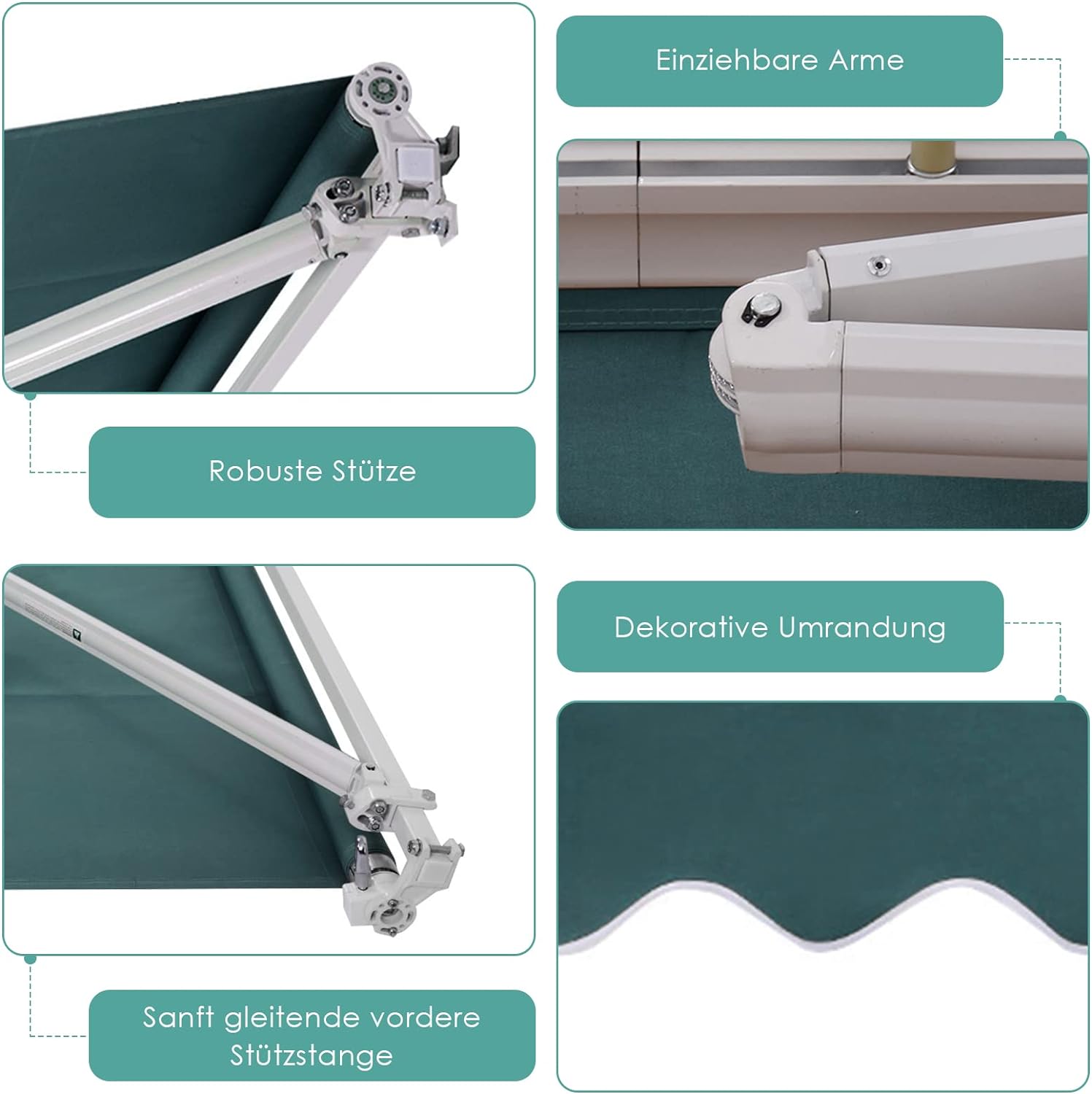 • ★ Ideale Materialien und gute Verarbeitung ★ Die Gelenkarmmarkise besteht hauptsächlich aus hochwertigen Aluminiumrohren, Polyesterfasern und Kunststoffen. Das pulverbeschichtete Aluminiumrohr ist rostfrei und hat eine lange Lebensdauer. Robustes