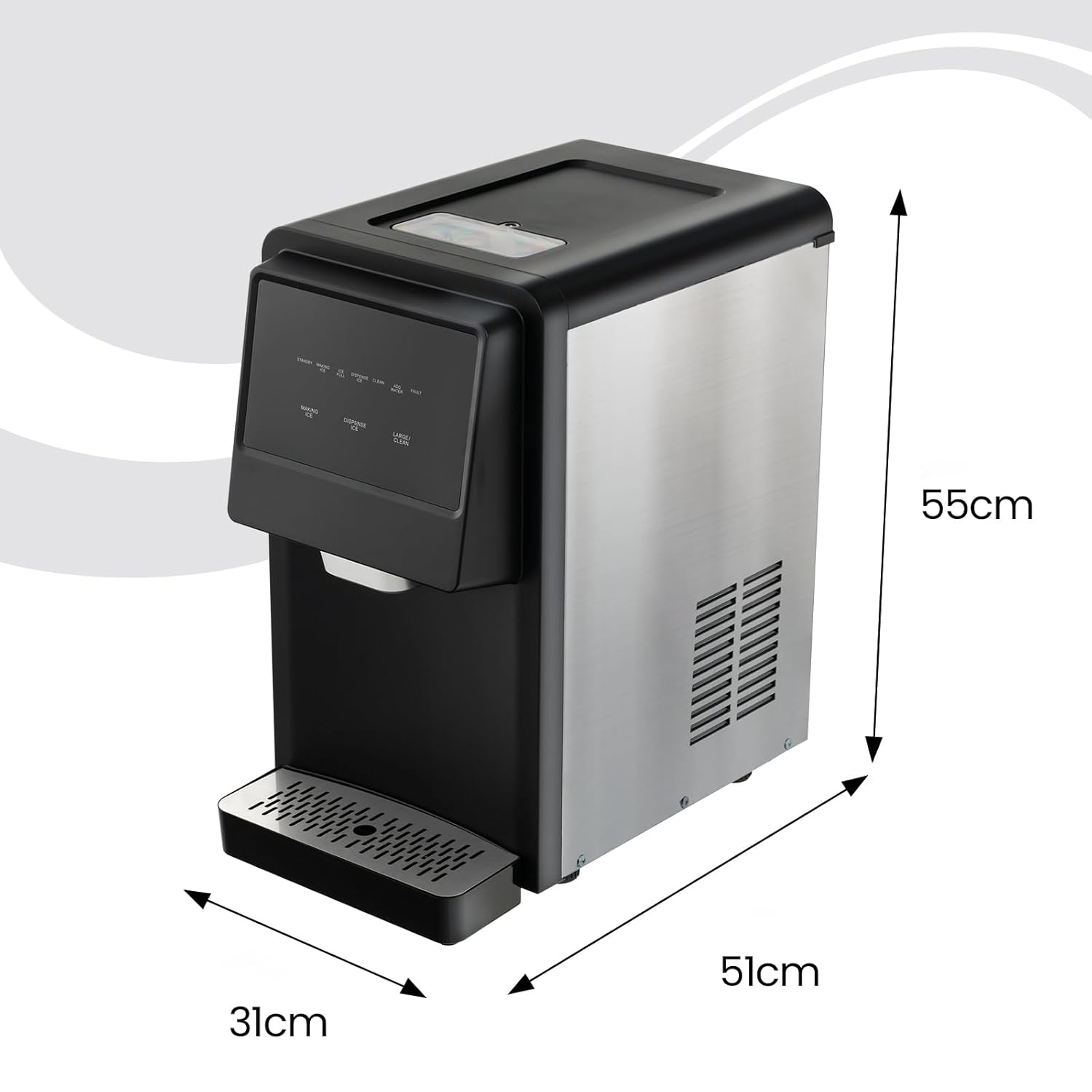 • ★ Hervorragende Eisbereitungsleistung ★ Die Eisbereitungszeit unserer Maschine beträgt 20–40 Minuten pro Zyklus (abhängig von der Temperatur), und die maximale Eisbereitungskapazität pro Tag beträgt ca. 27 kg. Die interne Eisspeicherkapazität