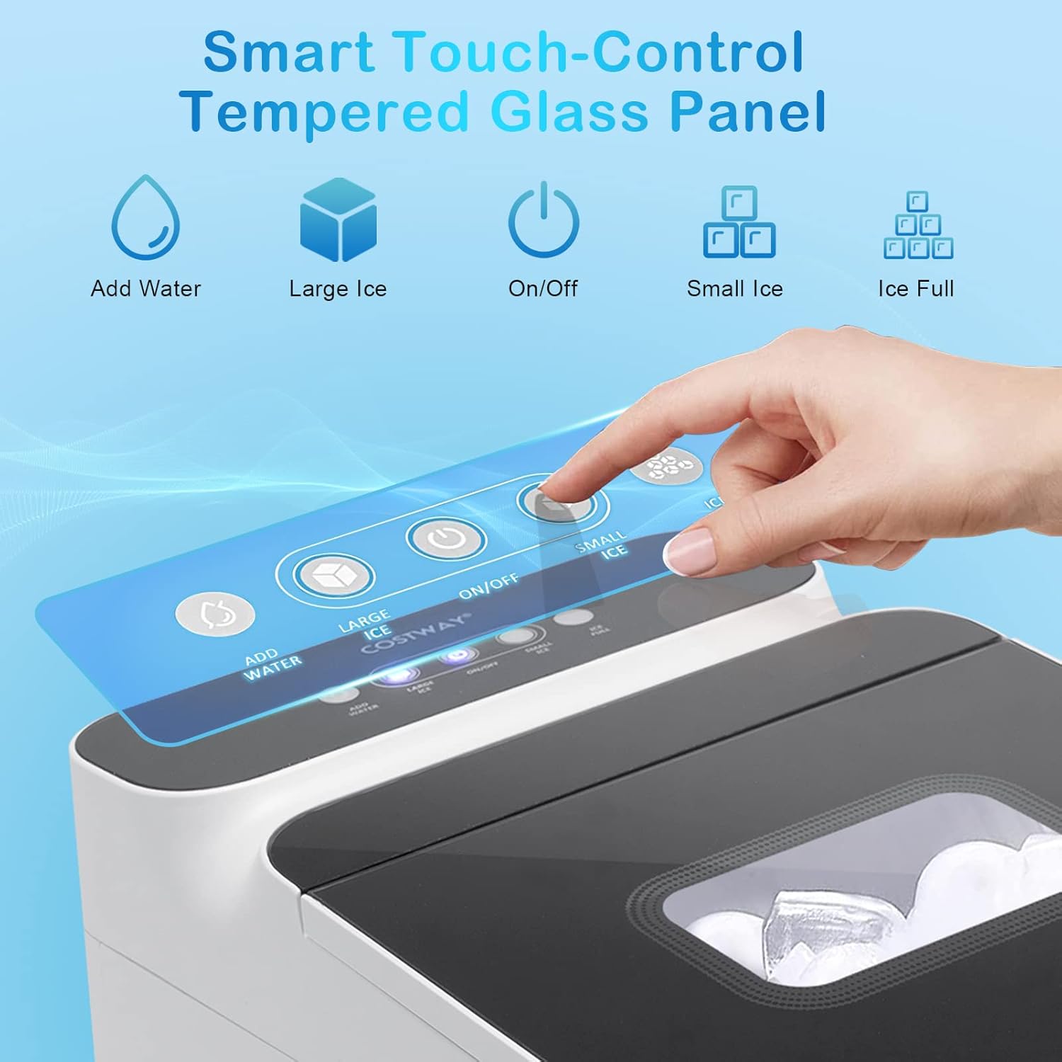 • ★ Sorgenfreier Betriebsablauf ★ Sie können den Eiswürfelbereiter über das LED-Display und den Touchscreen starten, der 1,5 L Wassertank erspart Ihnen das häufige Nachfüllen von Wasser und die fertigen Eiswürfel können im Eiskorb aufbewahrt werden (Volumen 0,5 kg), die Maschine kann 8 Stunden lang bei einer Raumtemperatur von 25 °C kalt bleiben.
