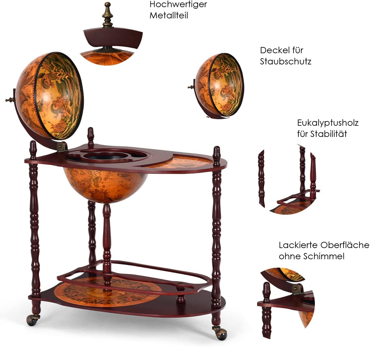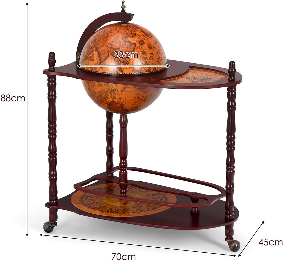 • ★ Funktionalität & Ästhetik ★ Neben der Funktionalität zeichnet sich unser Servierwagen durch sein bestechendes Aussehen. Durch das einzigartige Globus-Design mit Weltkarte und Gemälde sowie die schönen Säulen in Antikbraun ist er ein perfektes