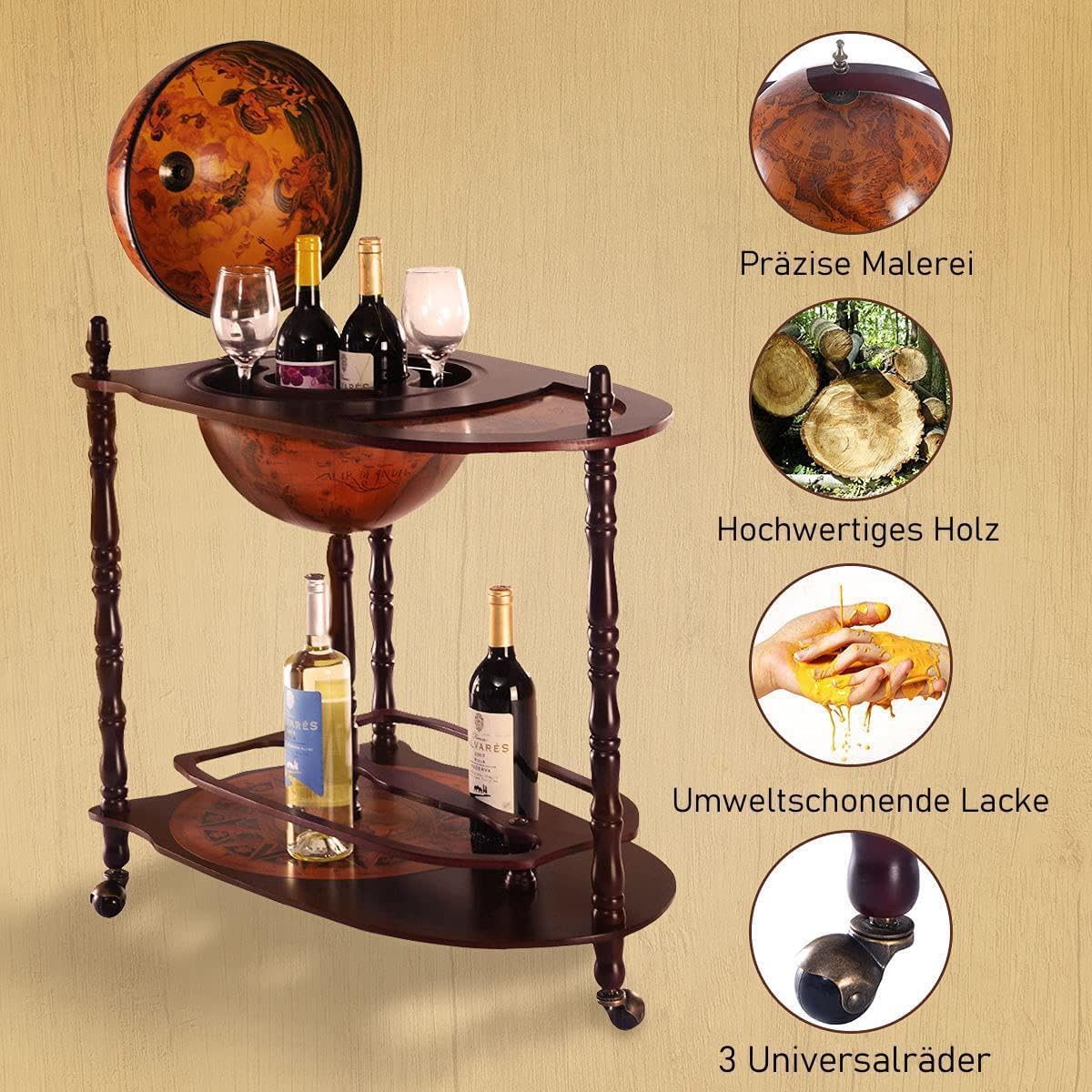 RELAX4LIFE Globusbar auf Rollen, Barwagen mit Weltkugel, Bartisch Massivholz, Servierwagen mit Weinf
