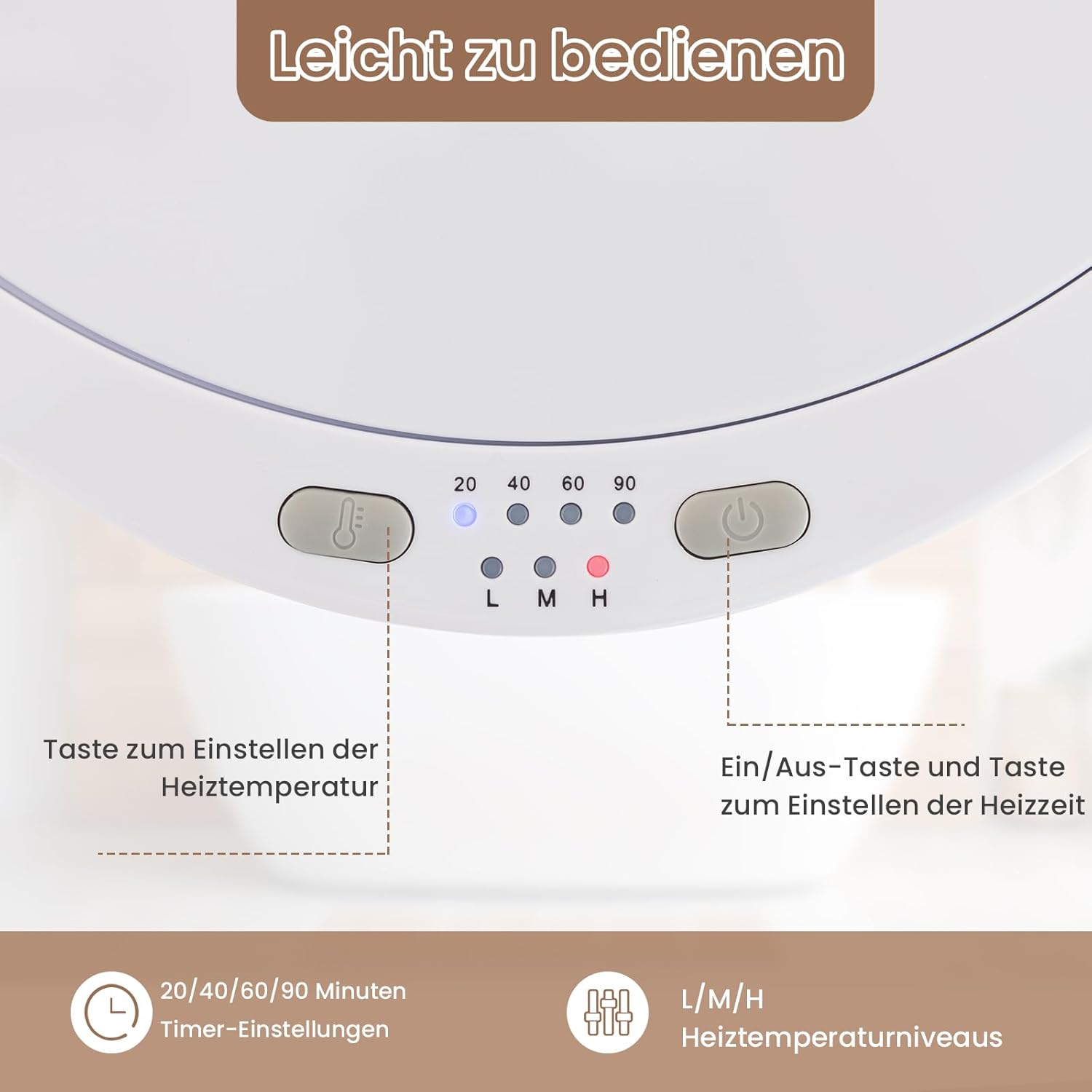 - ★ Einfache Zeit- & Temperatur-Einstellungen ★ Dieser Handtuchwärmer bietet einfache und intuitive Steuerelemente. Wählen Sie aus drei Heizoptionen: hoch (80 ℃), mittel (70 ℃) und niedrig (60 ℃). Drücken Sie einfach lange, um ein- /