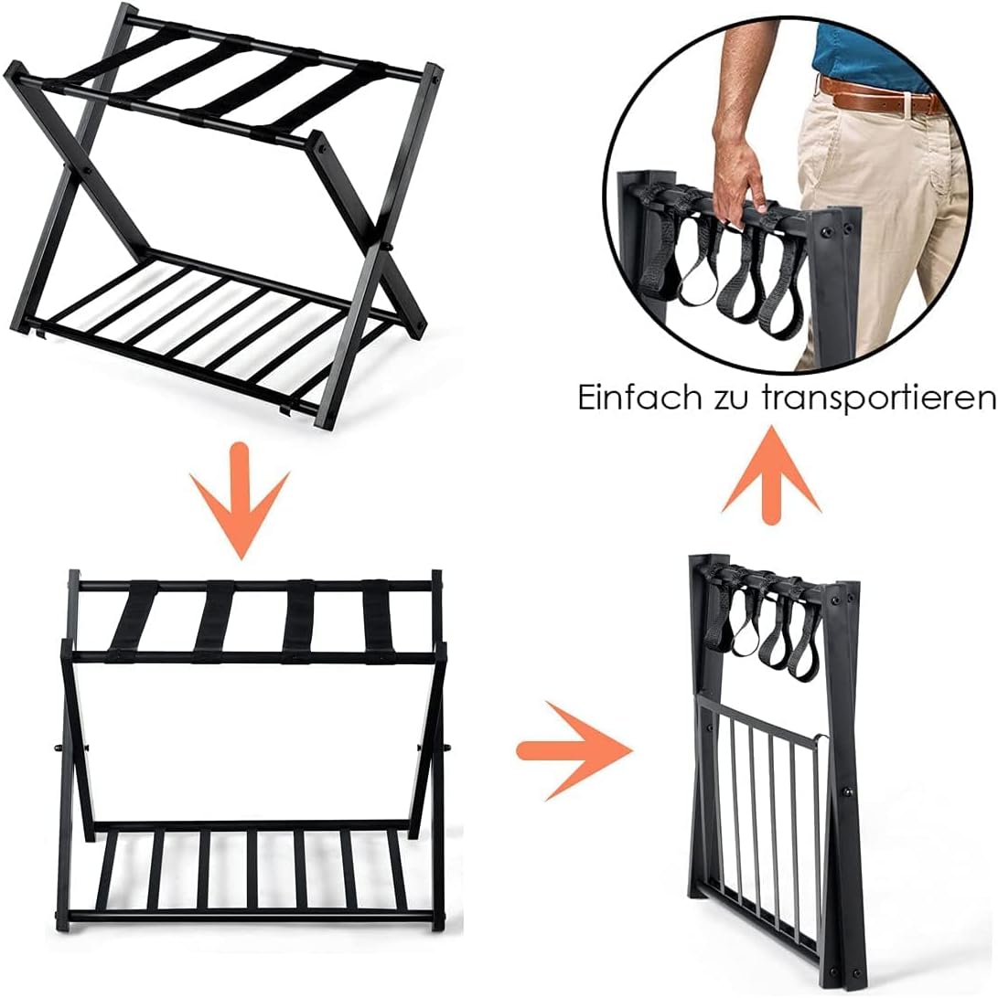 • ★ Platzsparendes und faltbares Design ★ Dank des innovativen Faltdesigns können Sie die Kofferablage schnell falten oder öffnen. Die zusammengeklappte Kofferablage kann hinter die Tür gelehnt oder unter das Bett gestellt werden. Die Kofferablage
