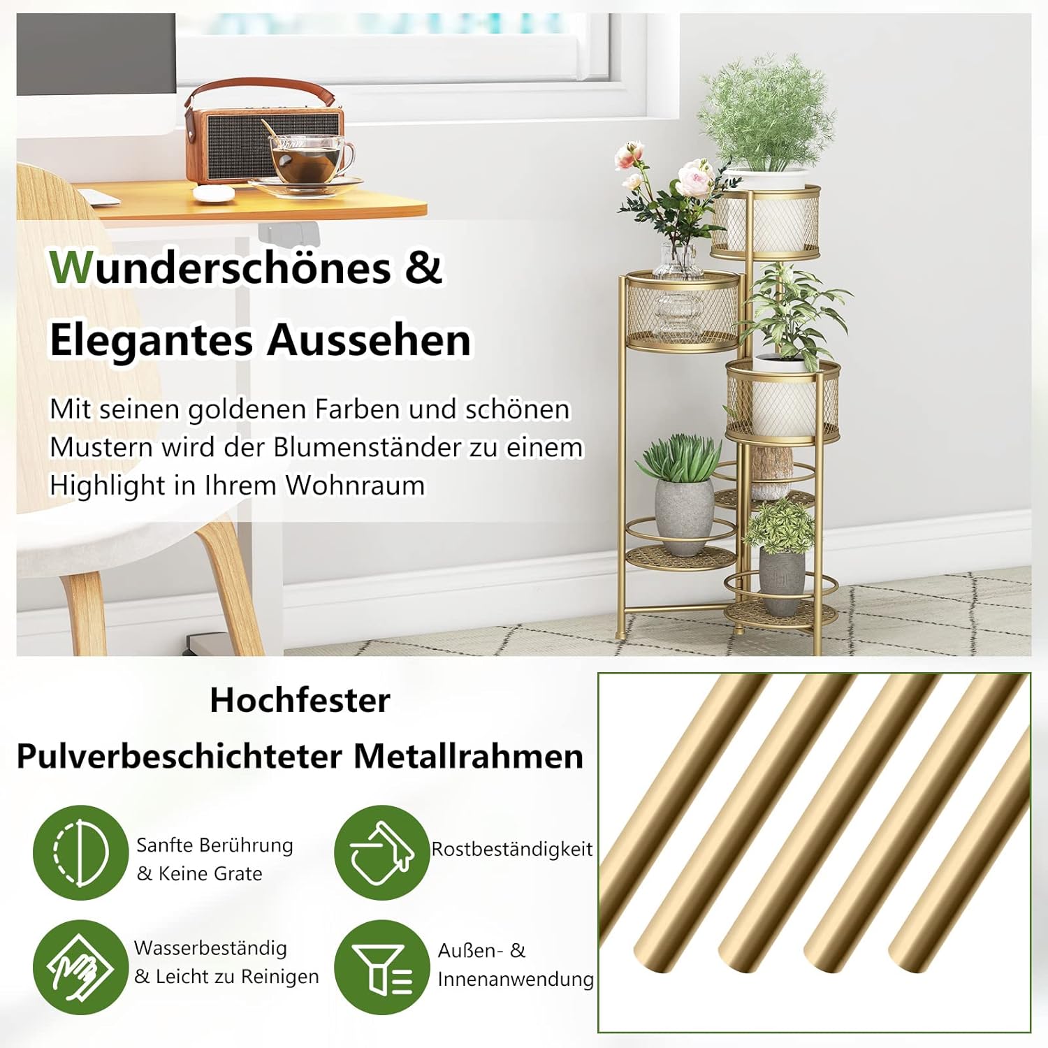 - ★ Prächtiges & Elegantes Aussehen ★ Mit allen goldenen Farben und schönen Mustern kann der Blumenständer ein Highlight Ihres Wohnraums sein. Er kann verschiedenen Anlässen wie Balkon, Wohnzimmer, Schlafzimmer, Büro, Eingangsbereich, Garten usw. eine grüne Note und Vitalität verleihen.