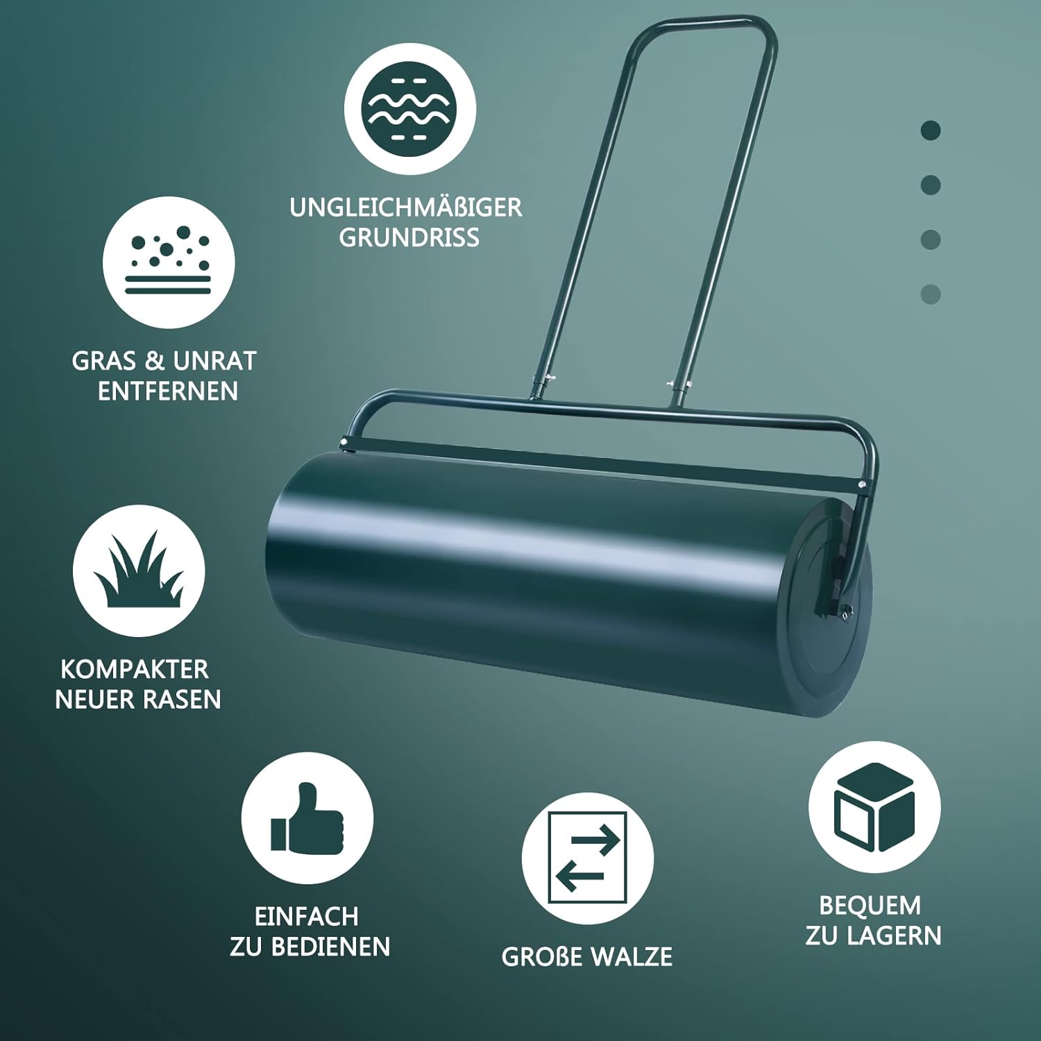 RELAX4LIFE Rasenwalze 90cm Breite 63L Füllvolumen, Rasenroller aus Stahl, Gartenwalze mit U-förmigem