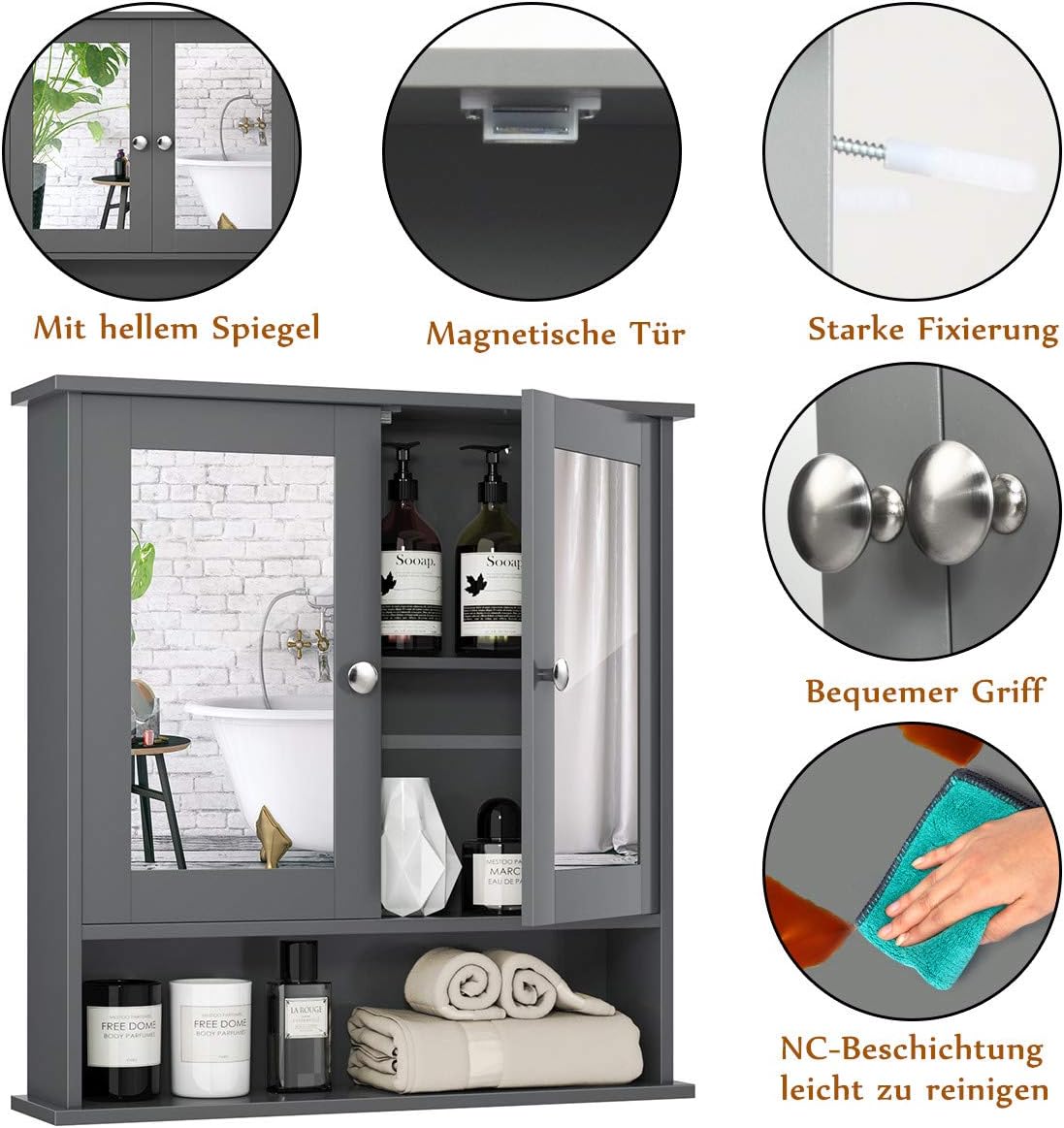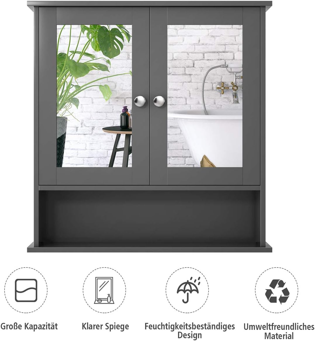 - ★2 in 1 Design★ Dieser Wandschrank integriert Aufbewahrungs- und Spiegelfunktionen in sich, was zu Hause viel Platz spart. Mit zwei Spiegelflächen können zwei Personen sich gleichzeitig schminken.
