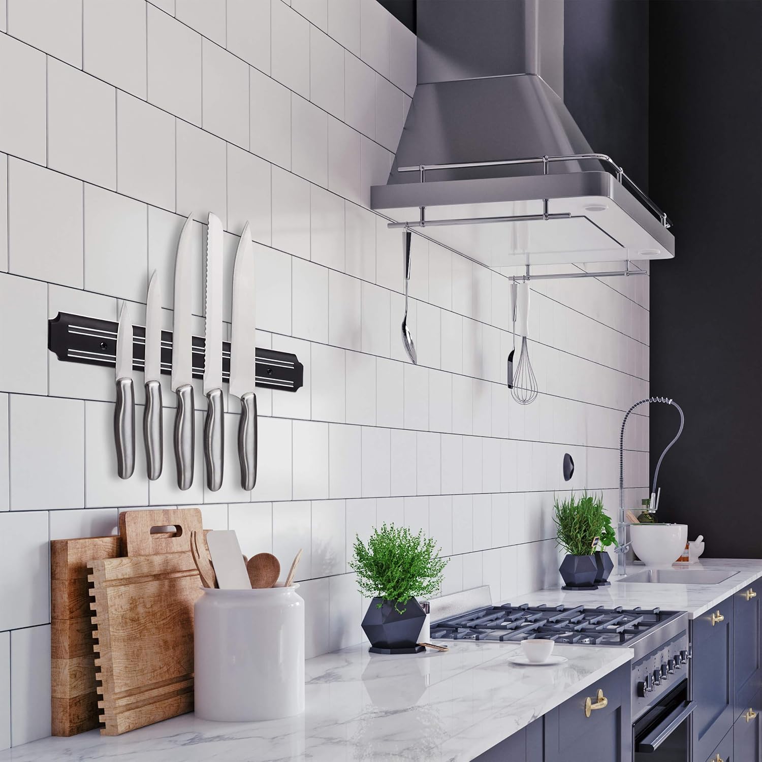 • Für die Küche: Küchenmesser und andere Küchenutensilien hängen dank der Wandleiste immer griffbereit