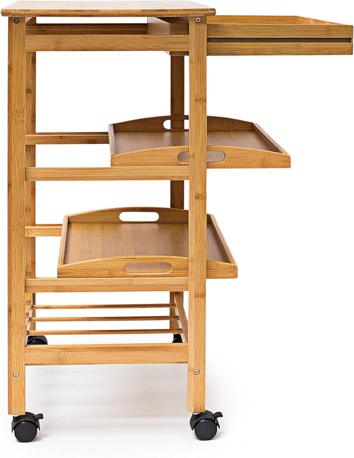 - Stabiler und mobiler Küchenwagen der James Reihe aus Bambus (HBT ca. 80,5 x 50 x 37 cm) - Allzweckwagen mit Stellfläche für Töpfe, Schüsseln, Teller uvm. Für Frühstück am Bett, als Ablage für Geschirr