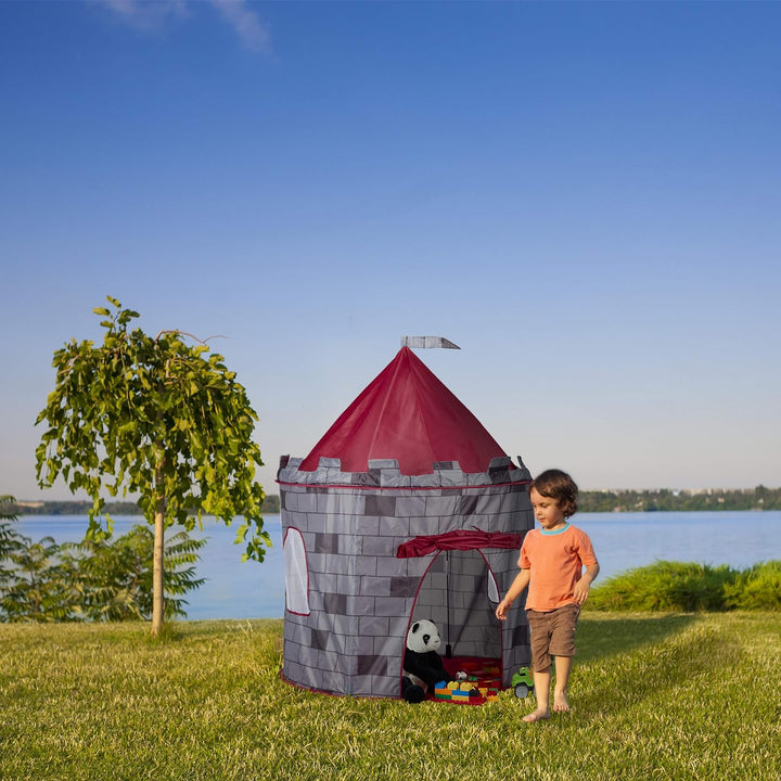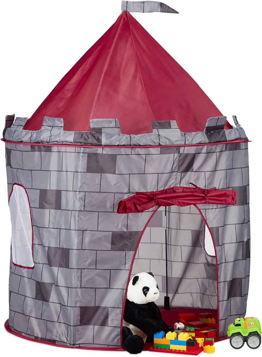 - Ritterburg: Spielzelt in Form von einer mittelalterlichen Burg - Mit Seiten in Steinoptik und spitzem roten Dach mit dekorativer Fahne - Masse H x B x T: ca. 125 x 105 x 105 cm