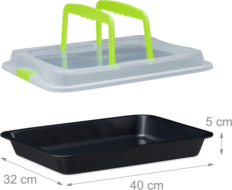 - Praktisch: Kuchenblech mit abnehmbarem Deckel inkl. 2 Griffen und Plastikklammern - Grünes Design
