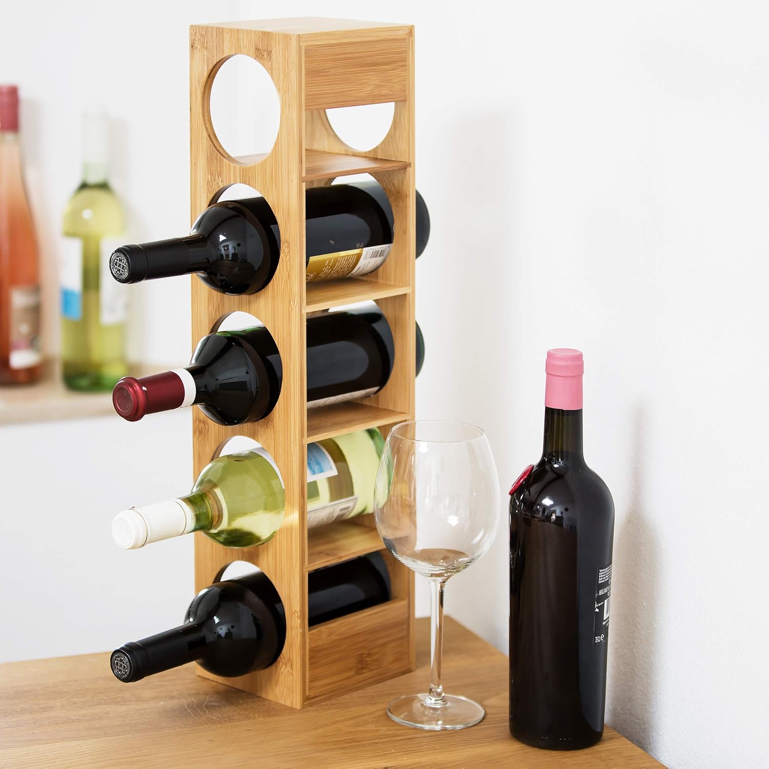 - Aus Bambus: Dank ihrer natürlichen Maserung und dem warmen Holzton des Materials fügen sich die Weinständer dekorativ und dennoch dezent in Ihre Einrichtung