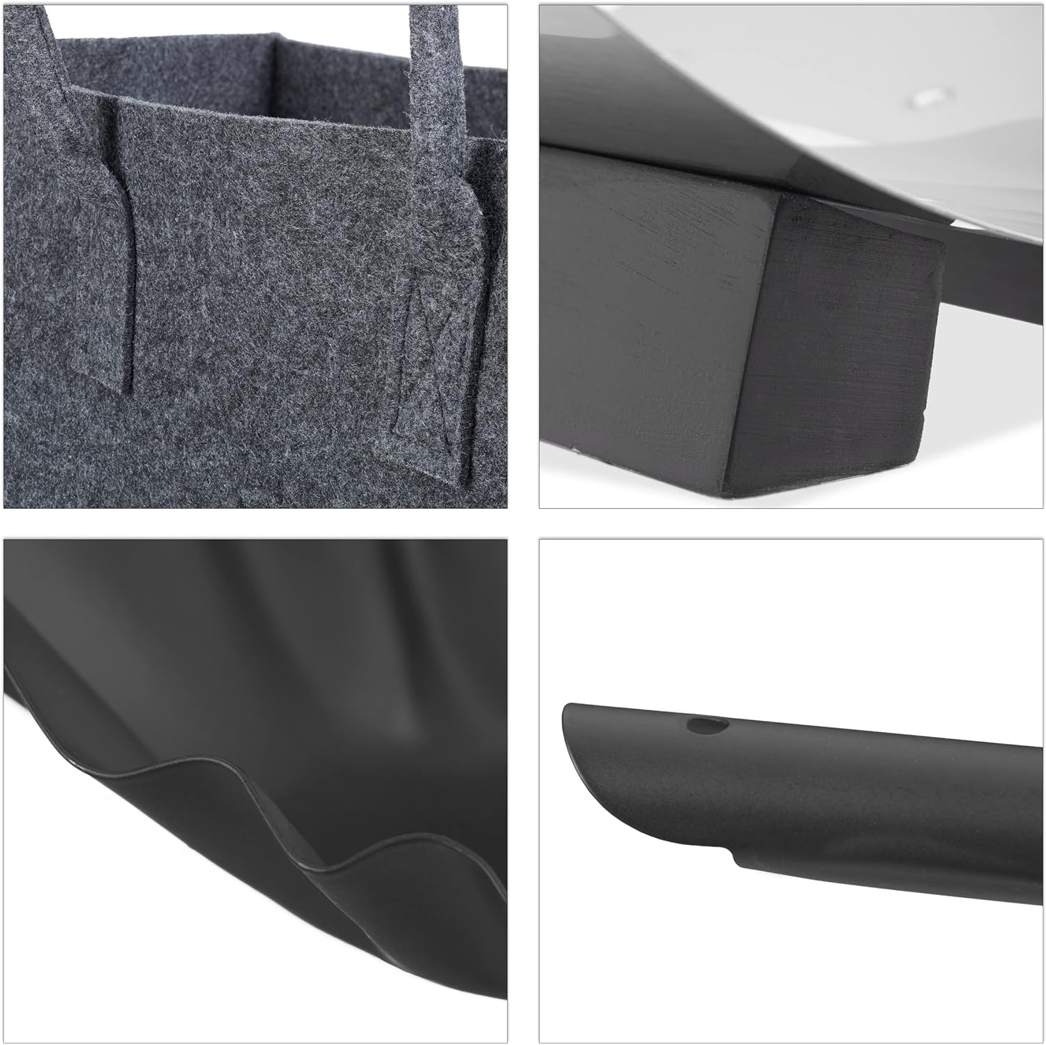 - 3 teiliges Kamin-Set: Das Set enthält eine Kaminholztasche aus Filz, einen Kaminholzkorb aus Metall und eine Kohlenschaufel