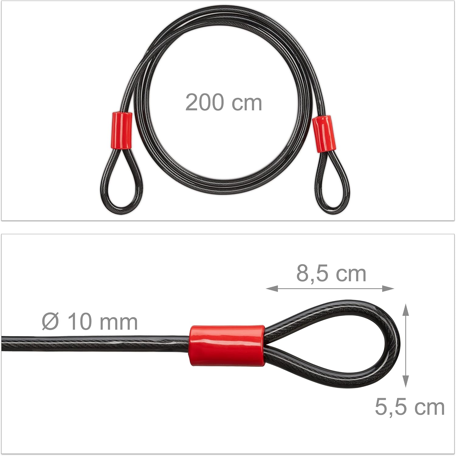 - Im Set: 3 x robustes Schlaufenkabel aus Stahl - Je ca. 2 m lang mit einem Durchmesser von ca. 10 mm