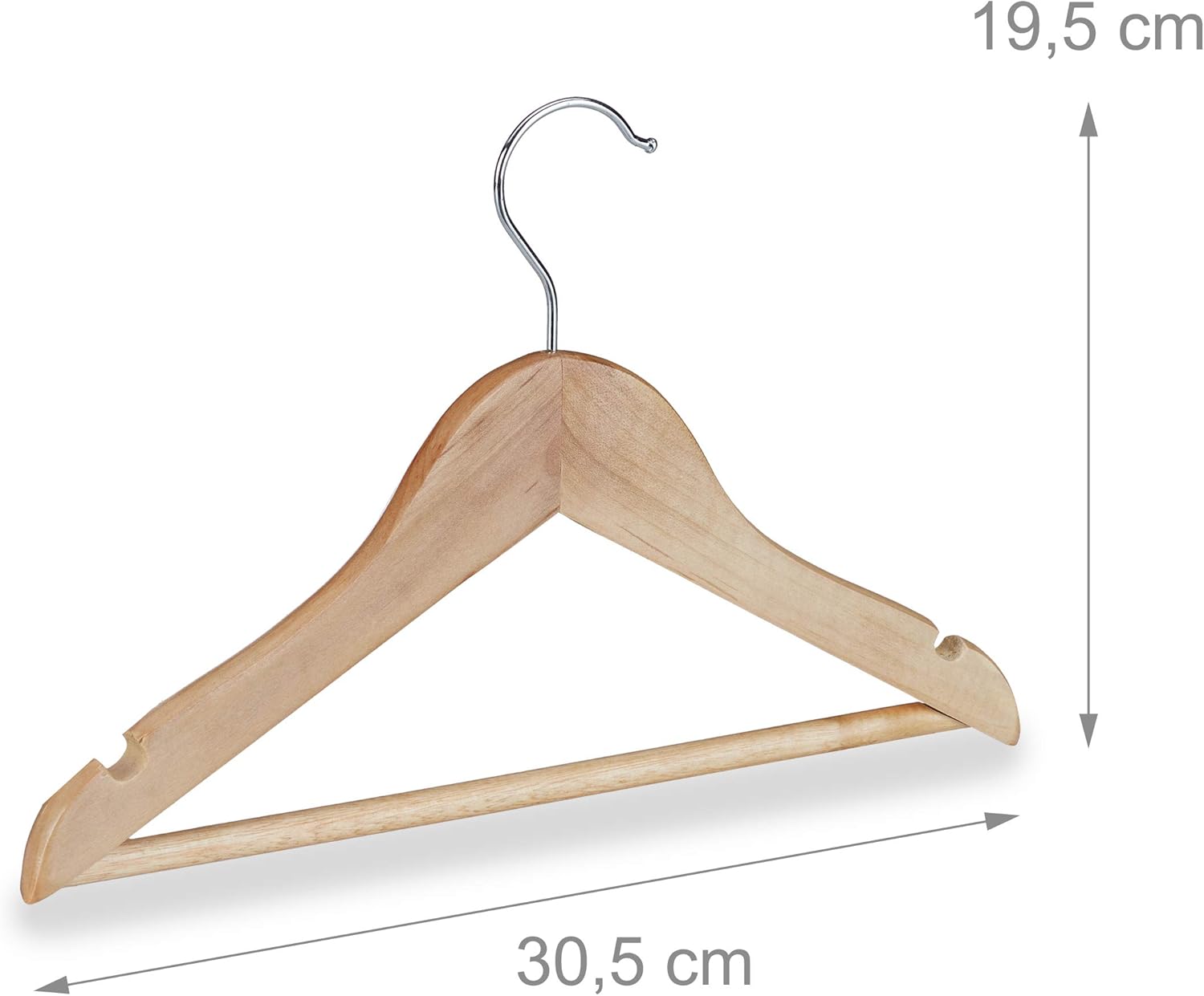 - Vielseitig: 2 Einkerbungen am Holzbügel sind ideal zum Aufhängen von Röcken oder Spaghettiträgern