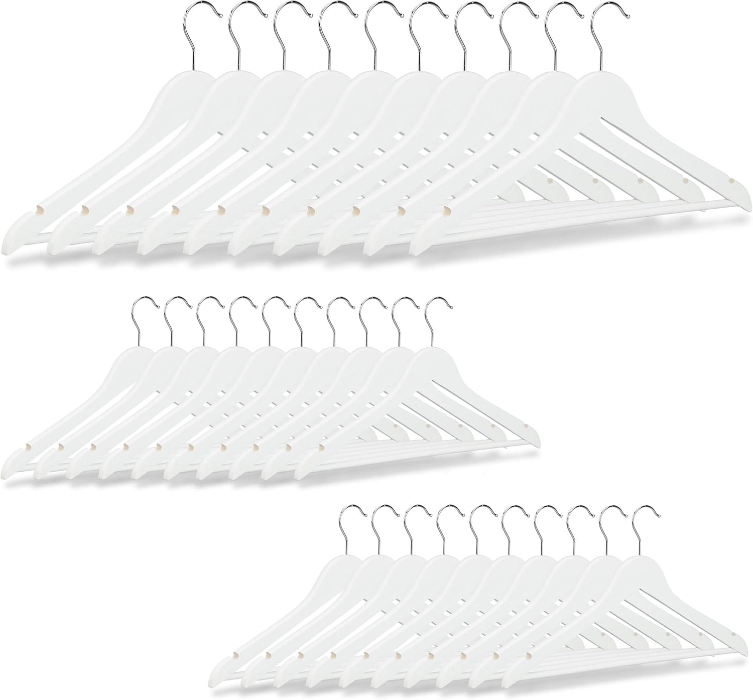 Relaxdays 90 x Kleiderbügel Holz, Hosenstange, Röcke, Kleider, Jacken, Hemdenbügel, Haken 360° drehb