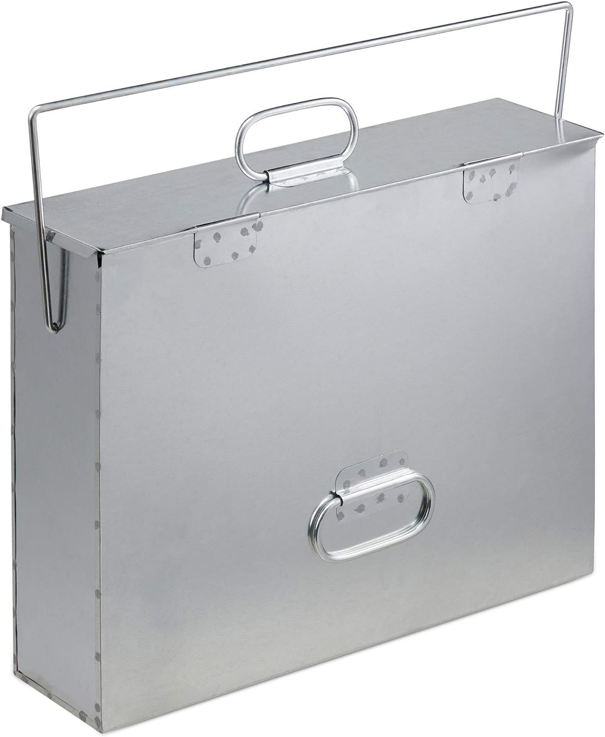 Relaxdays Ascheeimer eckig, Aschekasten mit Deckel, 15 l, verzinkter Stahl, Aschebehälter für Kamin,