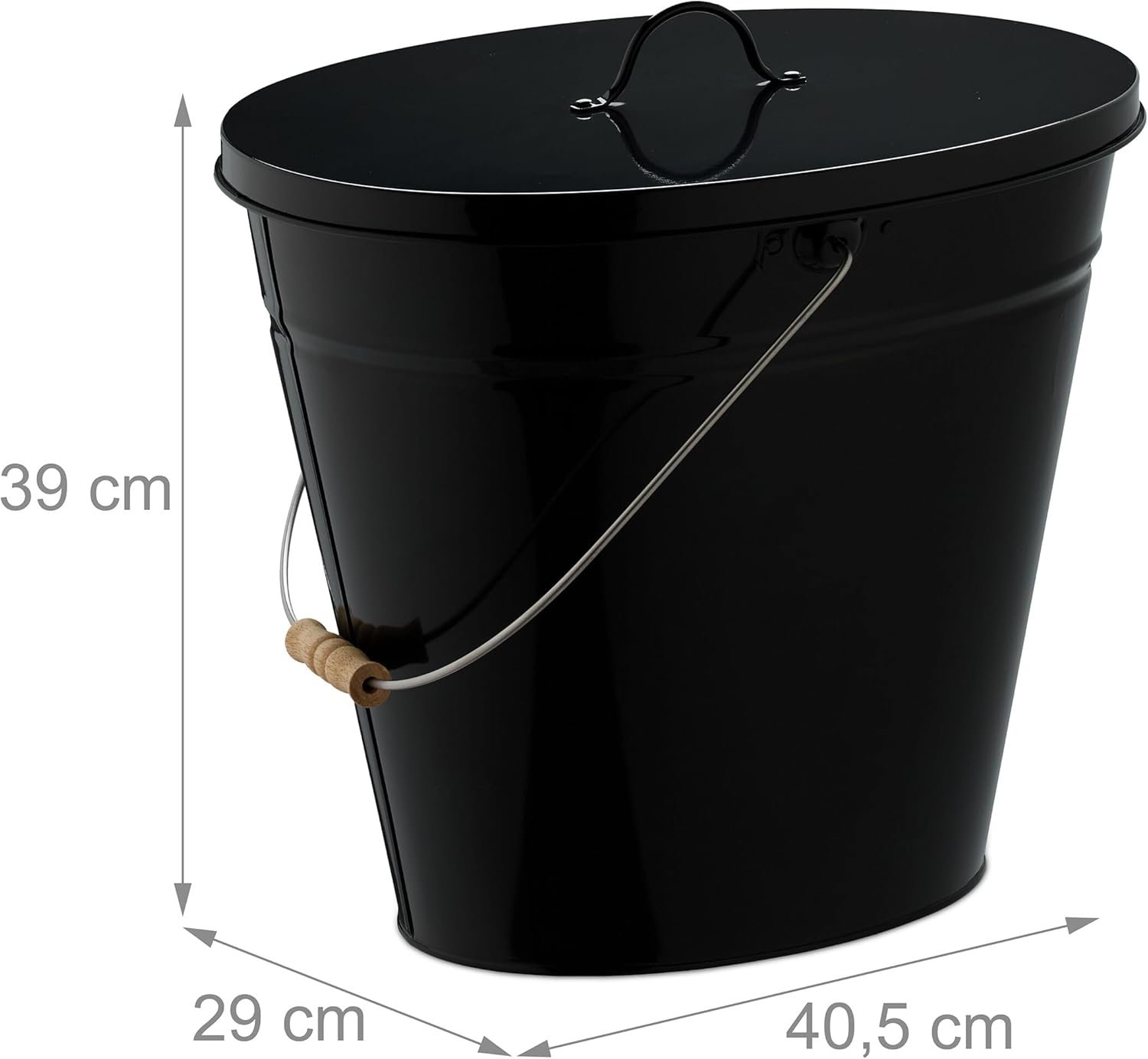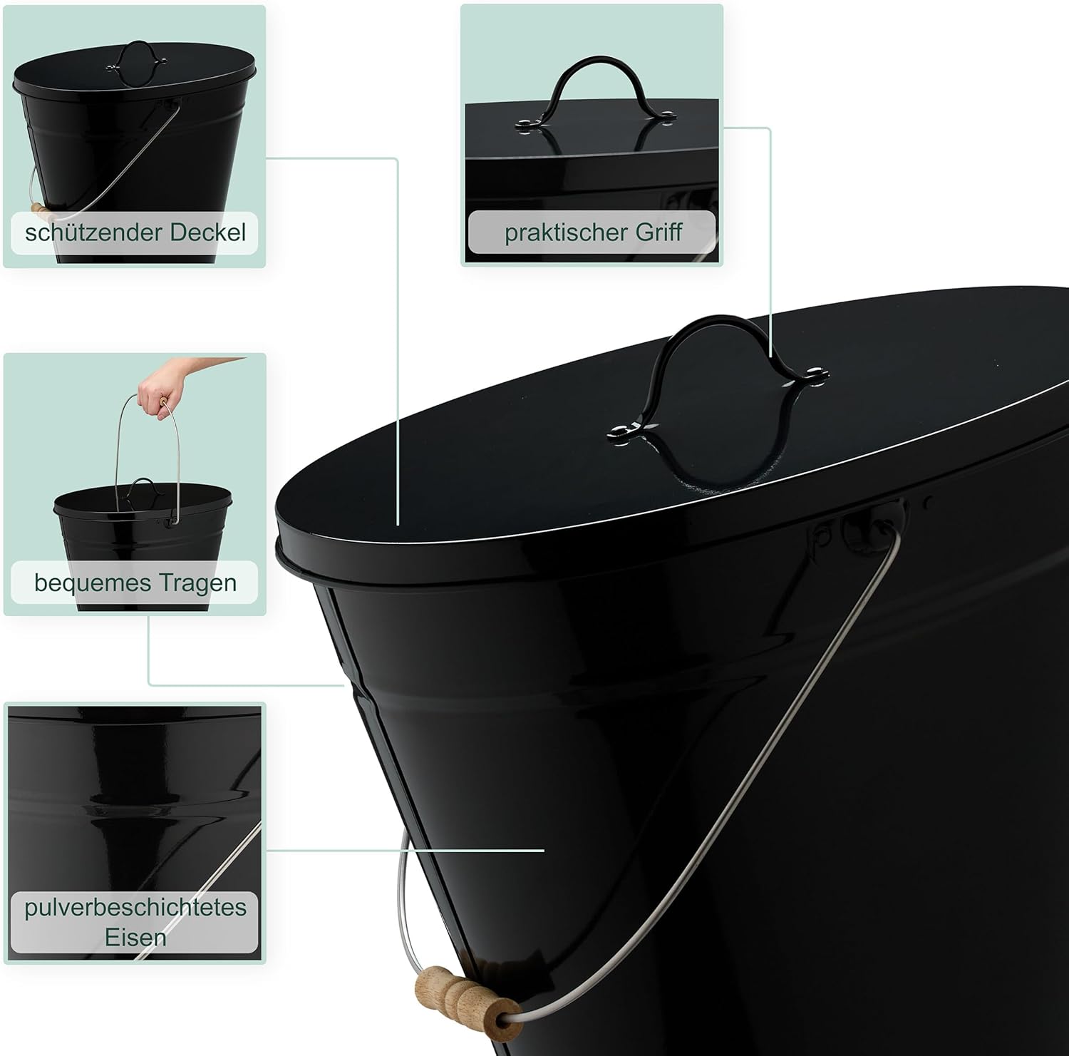 • Praktisch: Schwarzer Metalleimer mit Henkel mit Holzgriff zur Aufbewahrung und Entsorgung von Asche