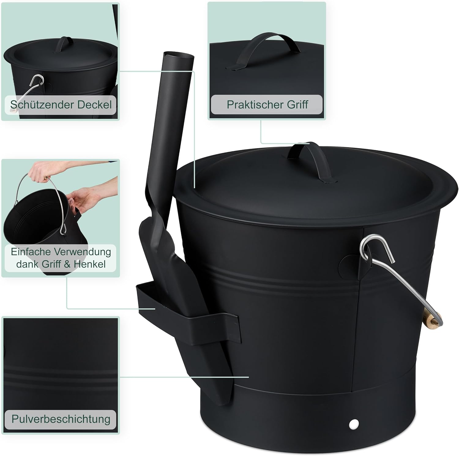 - Praktisch: Kohleeimer mit Kaminschaufel und Aschebesen - Inklusive Deckel zum Schutz vor Verwehung