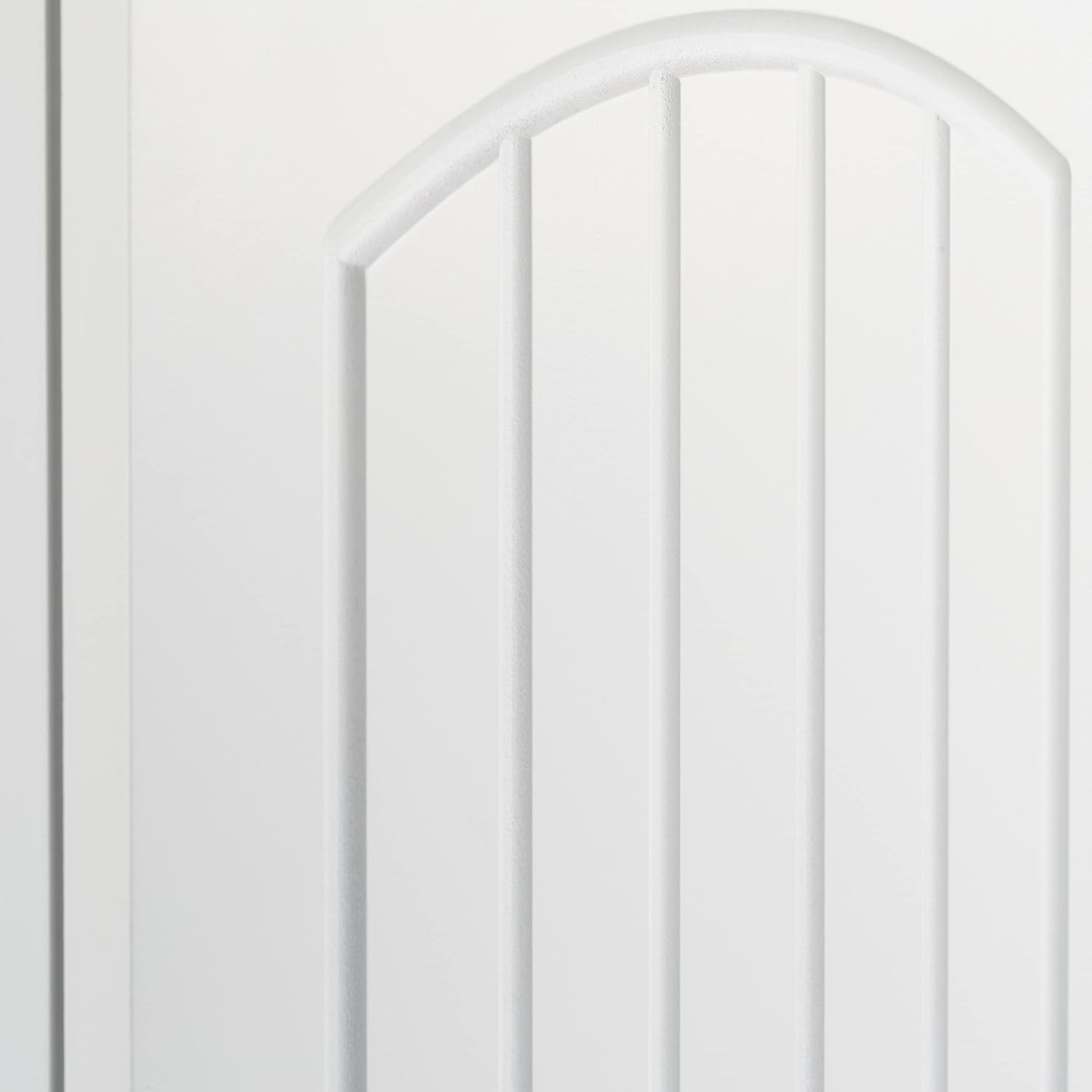 - Hingucker: Der weisse Badezimmerschrank kommt vor dunkleren Fliesen besonders gut zur Geltung - Ein angenehmes Muster mit senkrecht verlaufenden Lamellen verleiht der Schranktür Charme