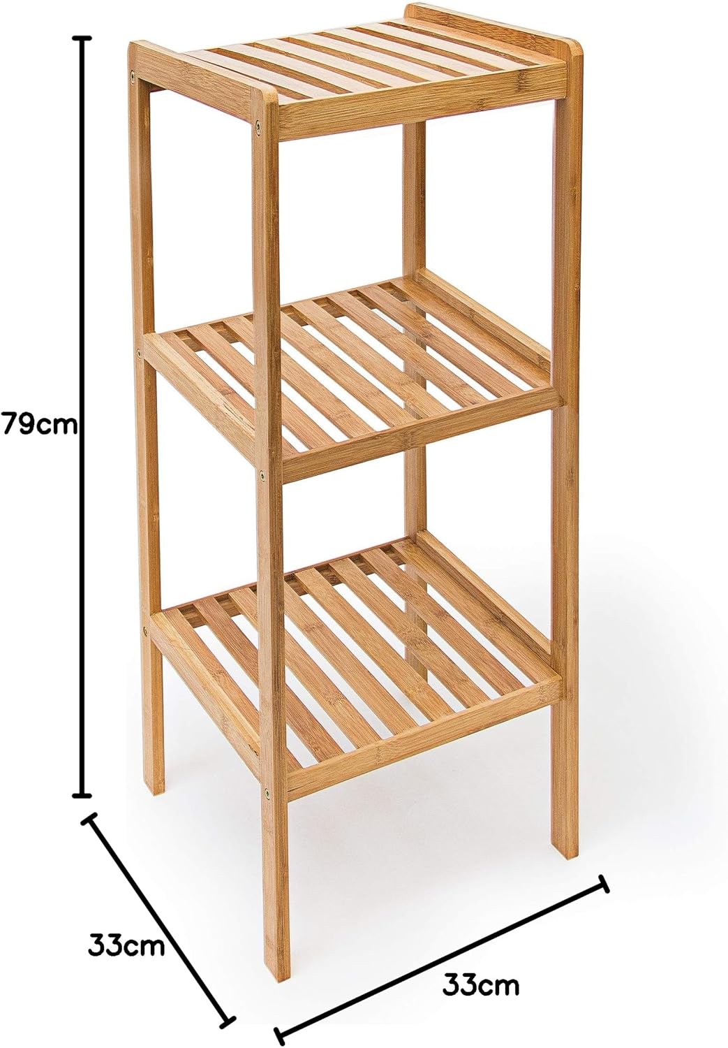 - Robustes Badregal aus Bambus mit natürlicher Maserung - Masse HBT: ca. 79 x 33 x 33 cm - Die 3 Ablageflächen beiten viel Stauraum für ihr Bad -Dank kleiner Stellfläche auch bei wenig Platz geeignet