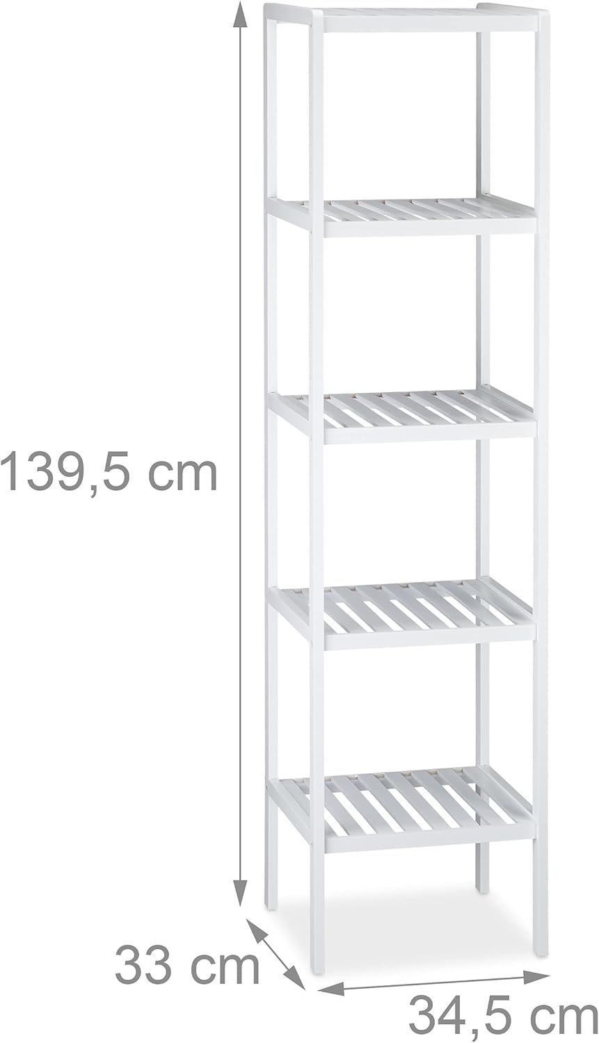 - Robustes Badregal aus Bambus: Masse HxBxT: ca. 139,5 x 34,5 x 33 cm - Die 5 Ablageflächen bieten viel Stauraum - Dank kleiner Stellfläche ideal bei Platzmangel - Bambus mit weiss lackierter Oberfläche
