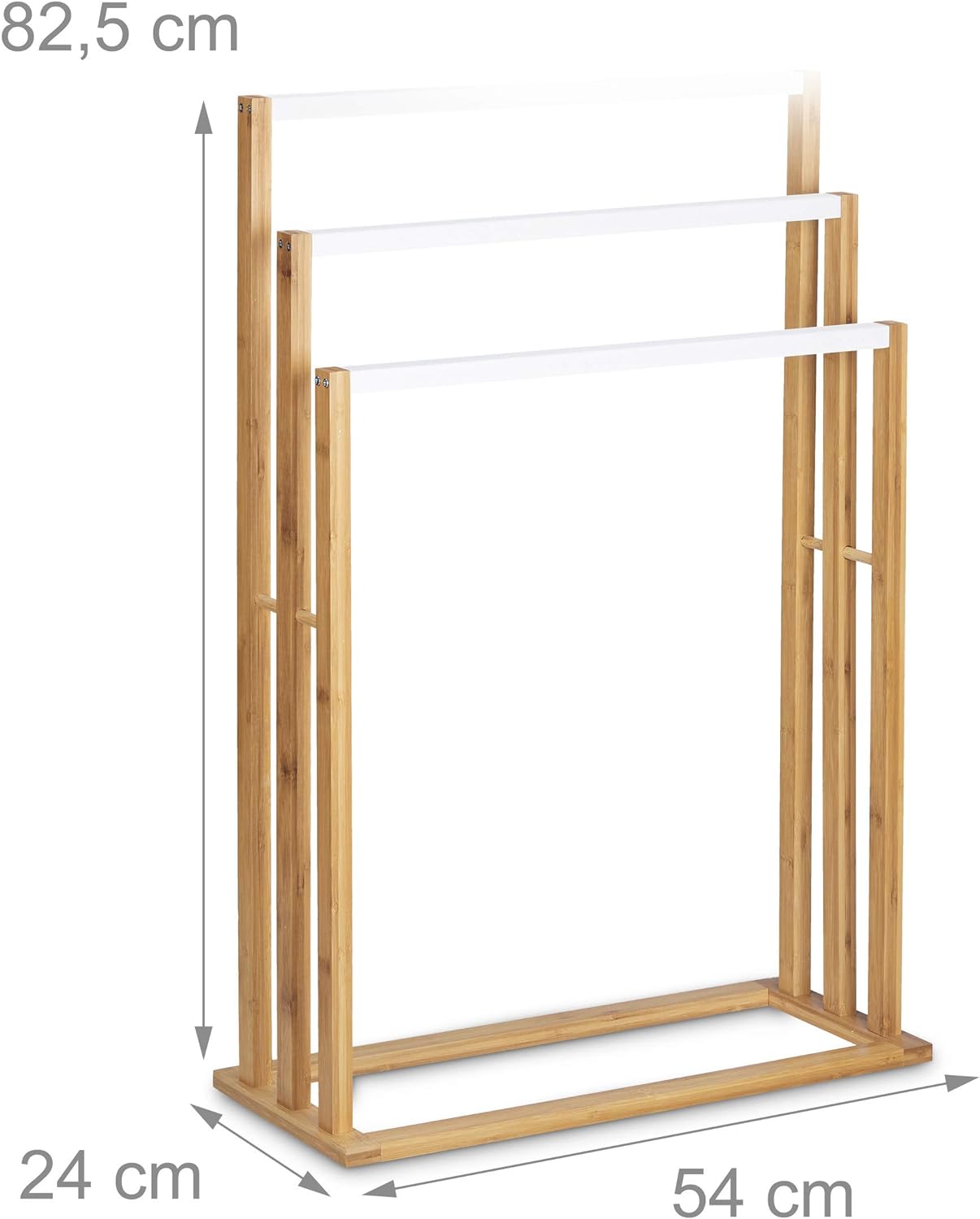 - Freistehend: Praktischer Standhandtuchhalter aus natürlichem Bambus - Zum Aufhängen von Waschlappen, Handtücher, Kleidung und andere Textilien - H x B x T: ca. 82,5 x 54 x 24 cm
