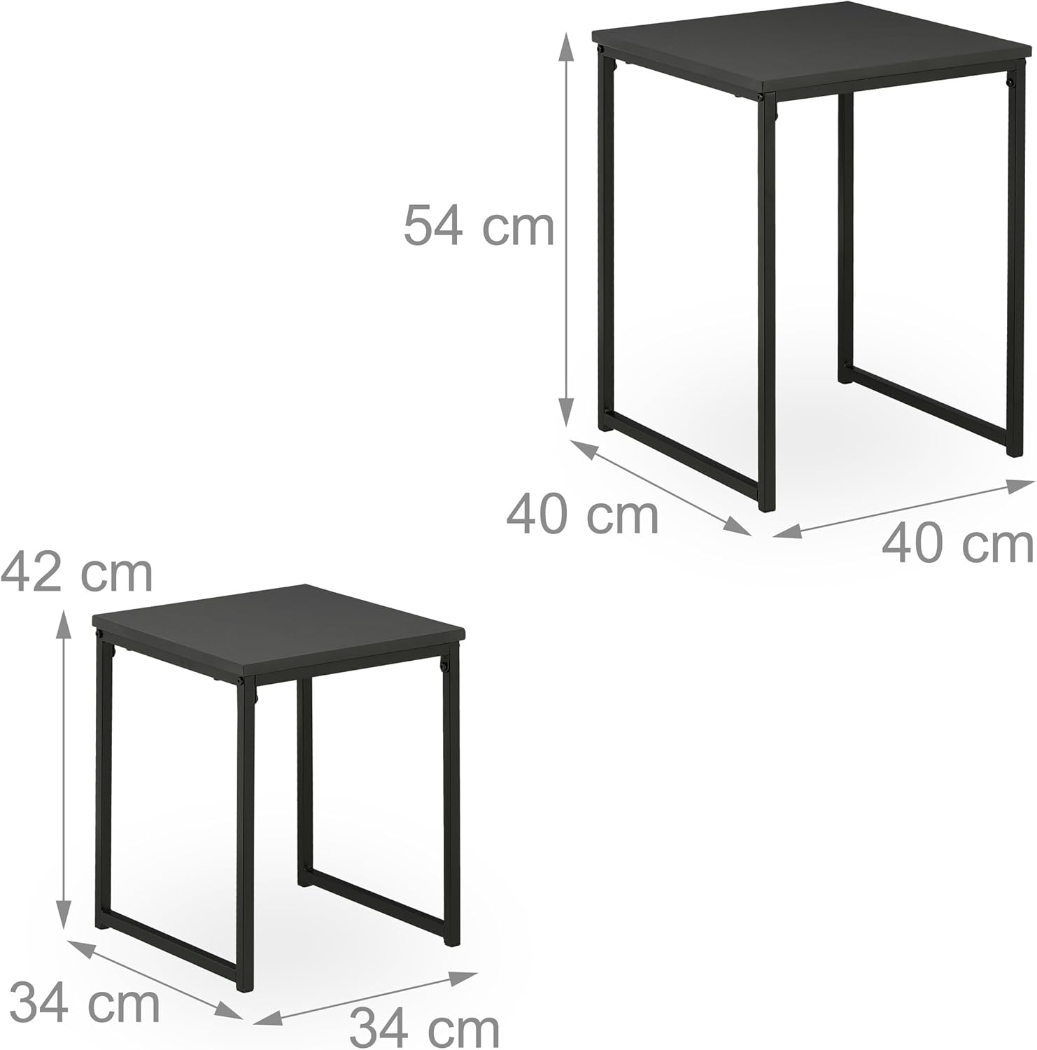 - Basics: Satztische in 2 Grössen - Klein HxBxT: ca. 42 x 34 x 34 cm - Gross HxBxT: ca. 54 x 40 x 40 cm