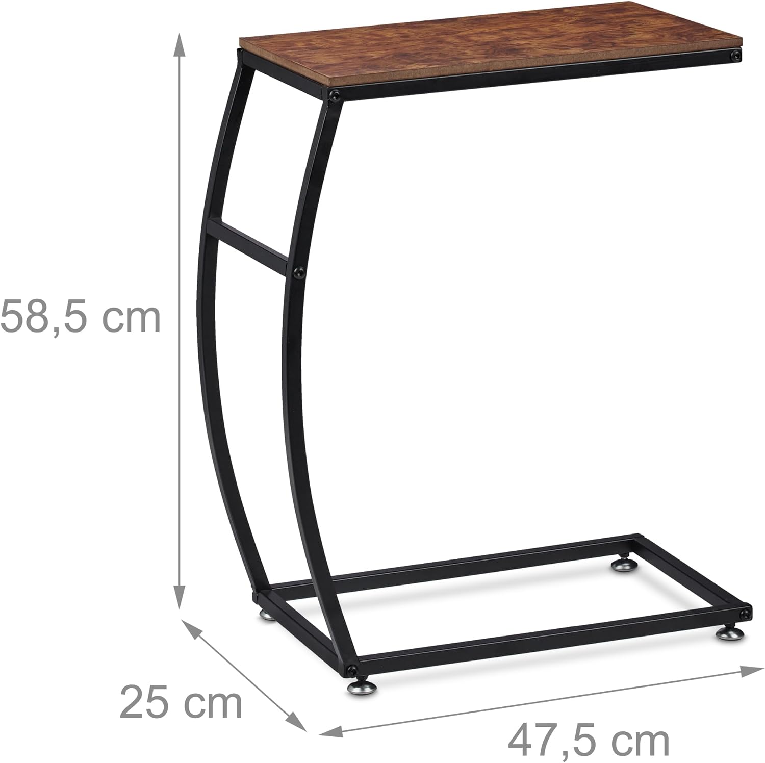Relaxdays Beistelltisch Industrial Design, C-Form, HBT 58,5 x 47,5 x 25 cm, Tisch für Couch & Bett,