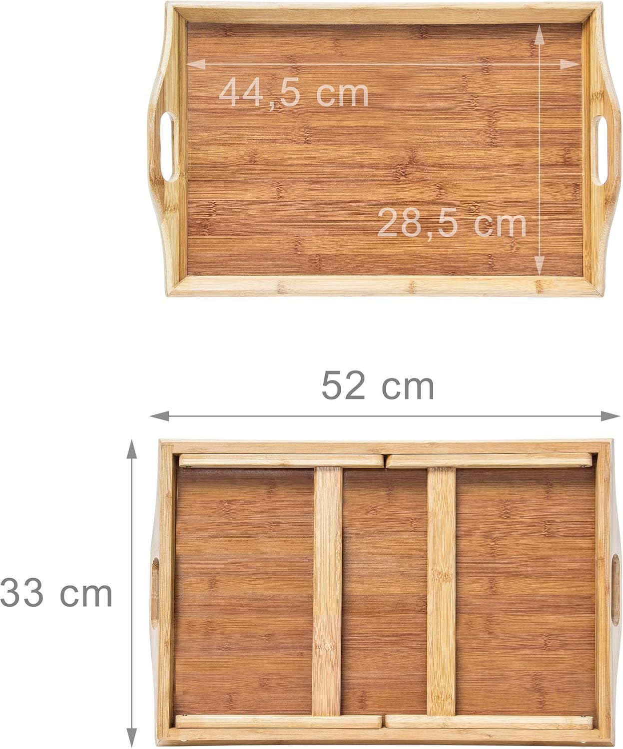 • Serviertablett und Betttablett in einem - Die einklappbaren Füsse und die 2 Tragegriffe machen das Tablett multifunktional - Für den gemütlichen Fernsehabend auf der Couch oder zum Bewirten Ihrer Gäste