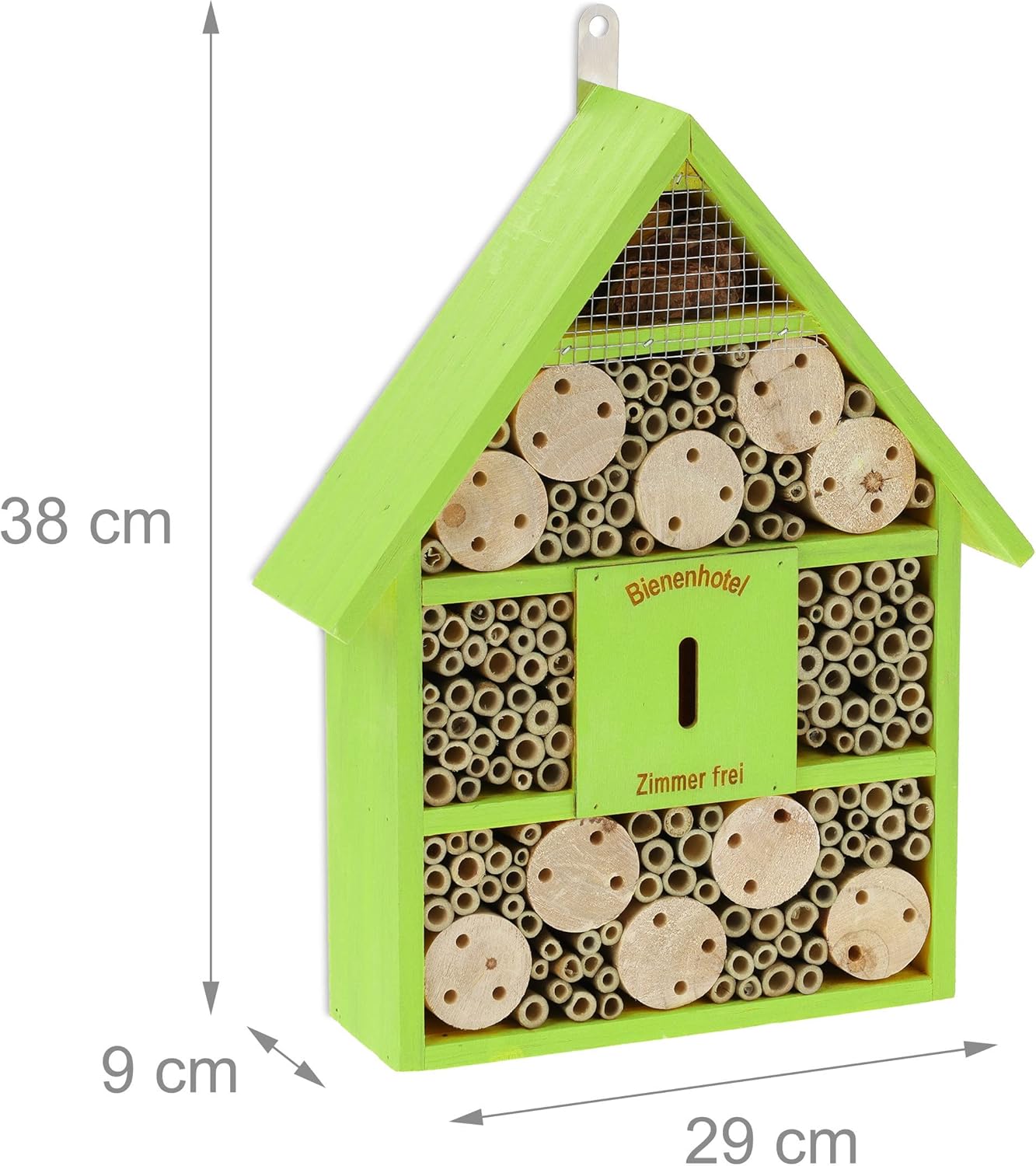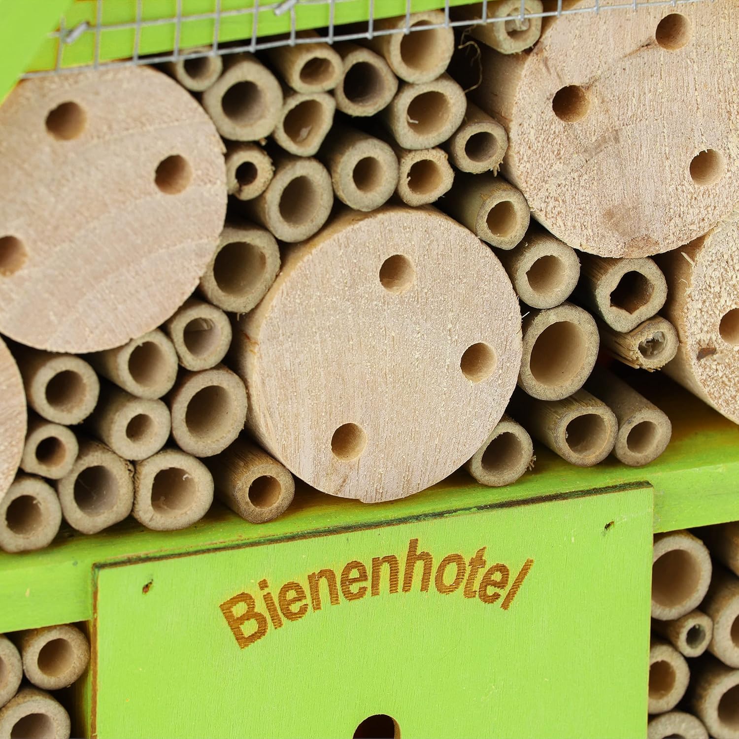 - Material: Bienenhaus mit Holz- und Bambusröhrchen als Nistmaterial - Grünes Design als Hingucker