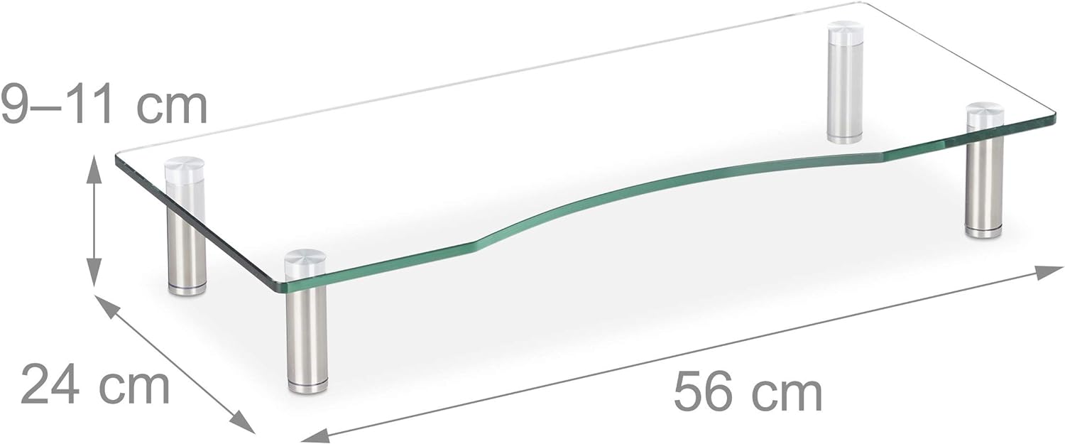 Relaxdays Bildschirmständer Glas, TV Aufsatz, Notebookständer höhenverstellbar 9 - 11 cm, B x T: 56
