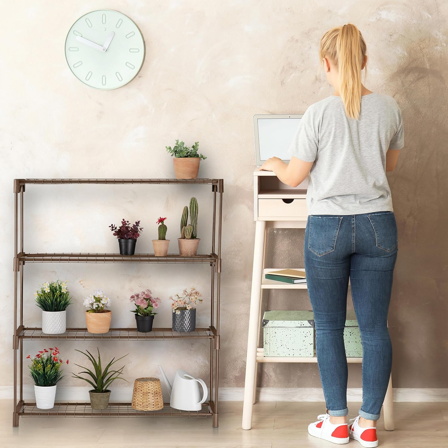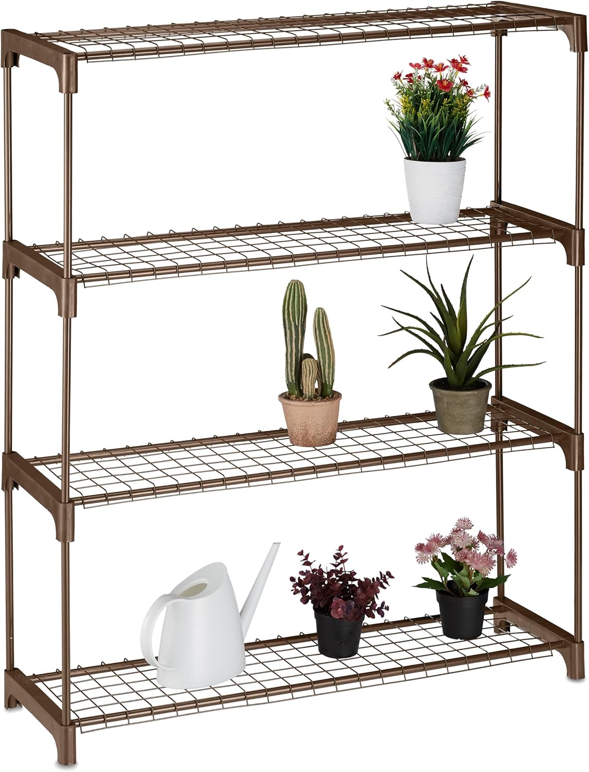 • Praktisch: Braunes Pflanzenregal mit 4 Ebenen zur Präsentation Deiner Blumen und Topfpflanzen