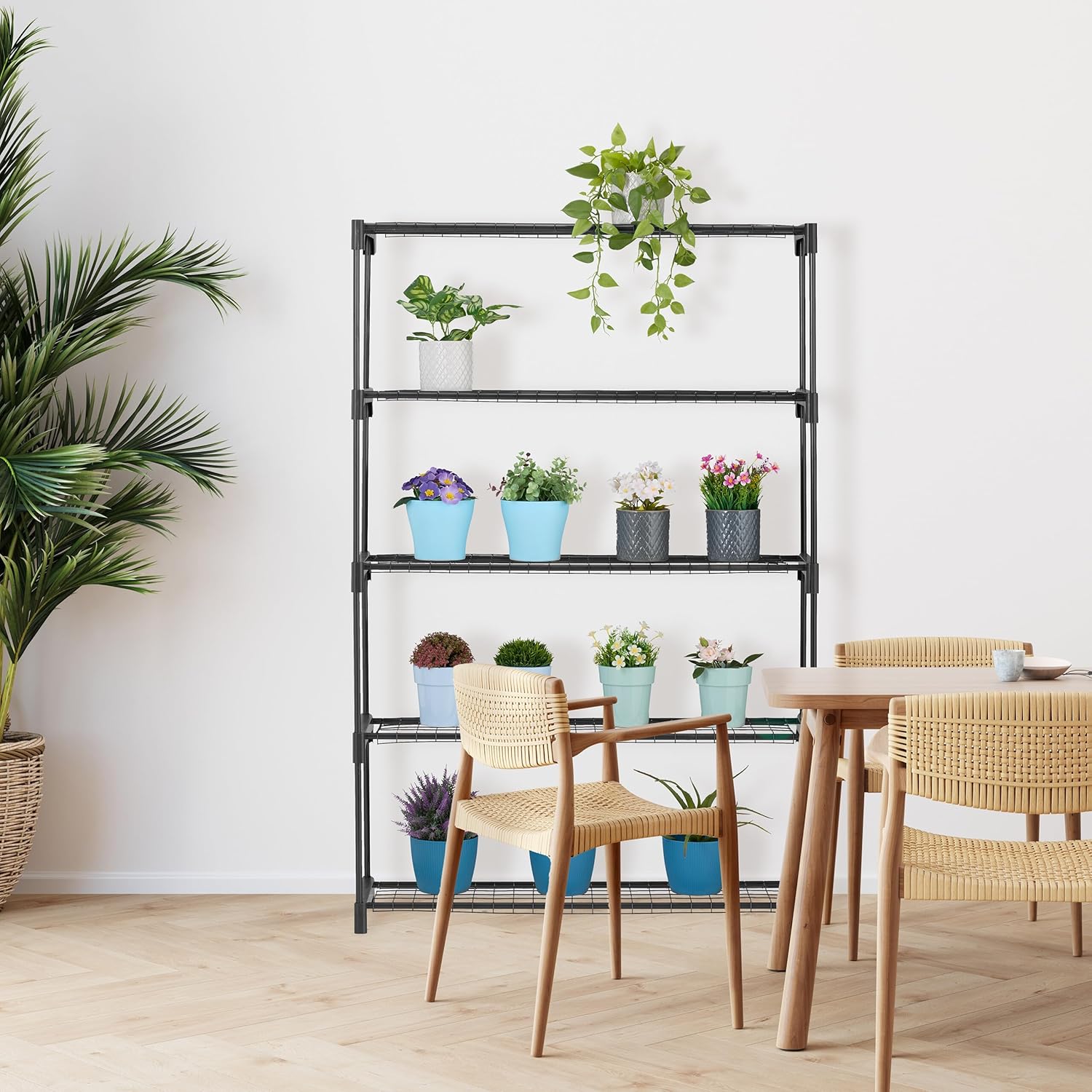 - Praktisch: Schwarzes Pflanzenregal mit 5 Ebenen zur Präsentation Deiner Blumen und Topfpflanzen