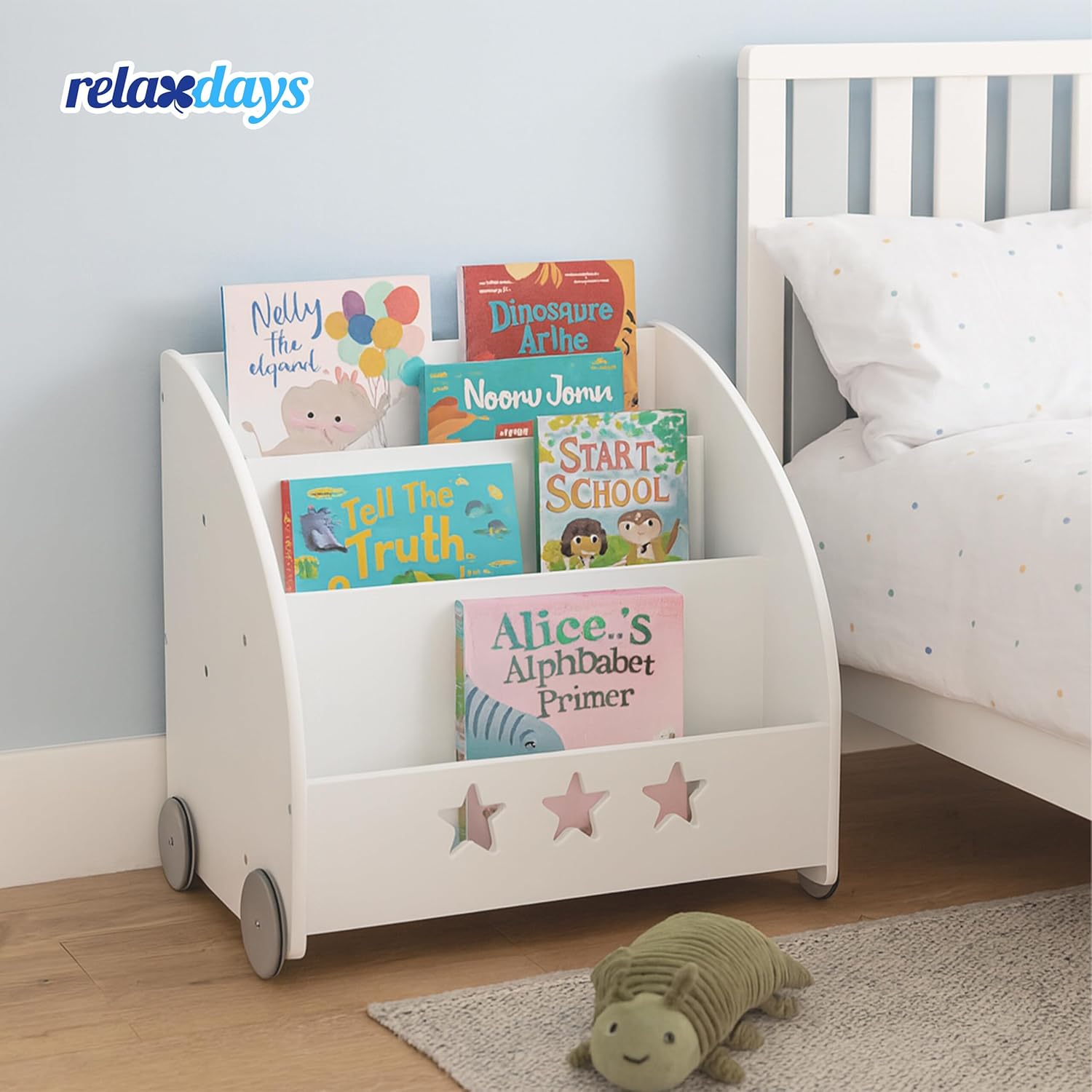 - Design: Weisses Regal mit dezentem Sternmuster schafft eine freundliche Atmosphäre im Kinderzimmer