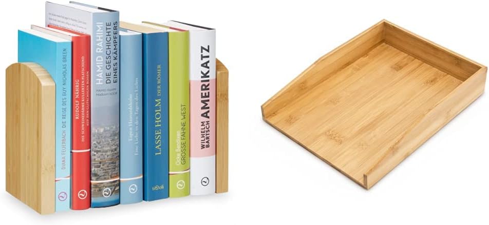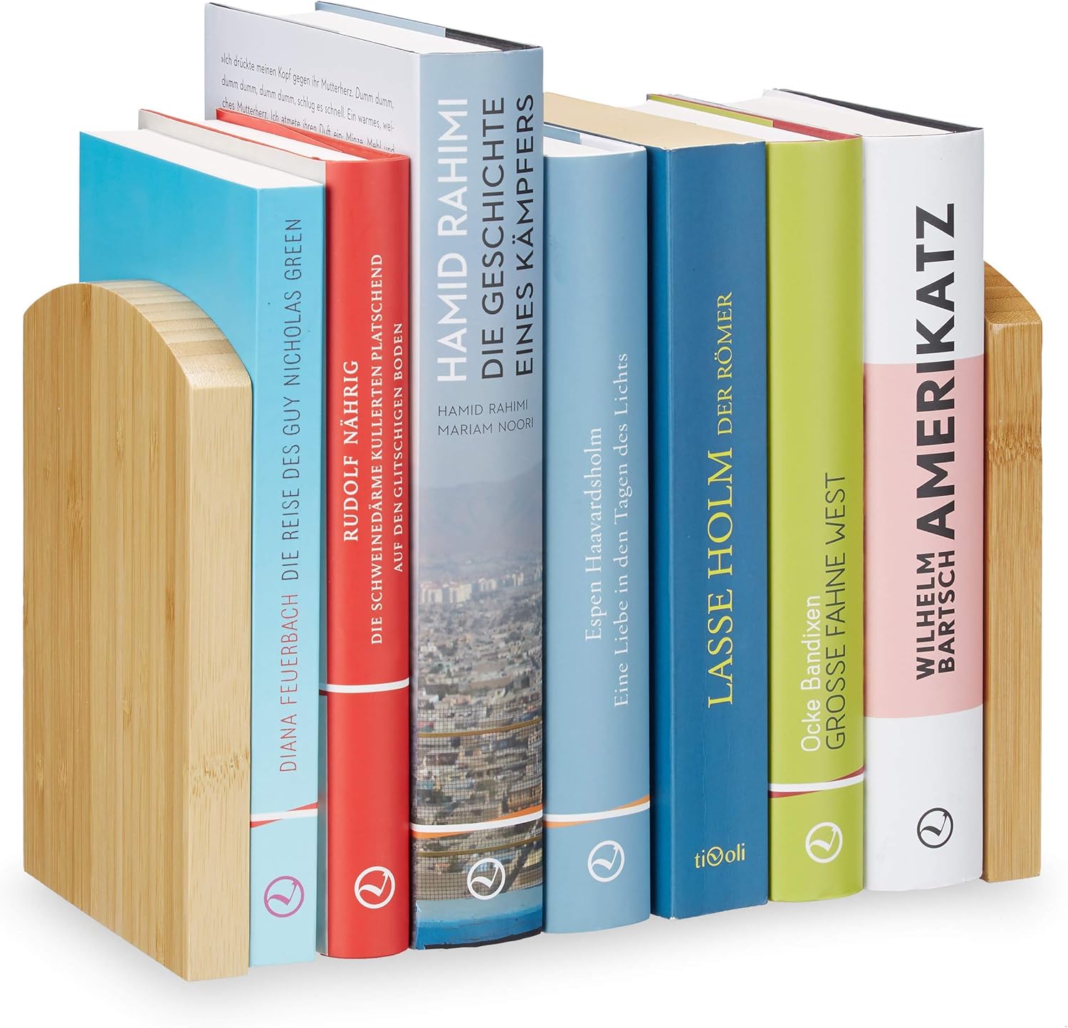 Relaxdays Buchstütze 2teilig, HBT: 17x11,5x12,5 cm, Natur & Briefablage Bambus, Schreibtischablage f