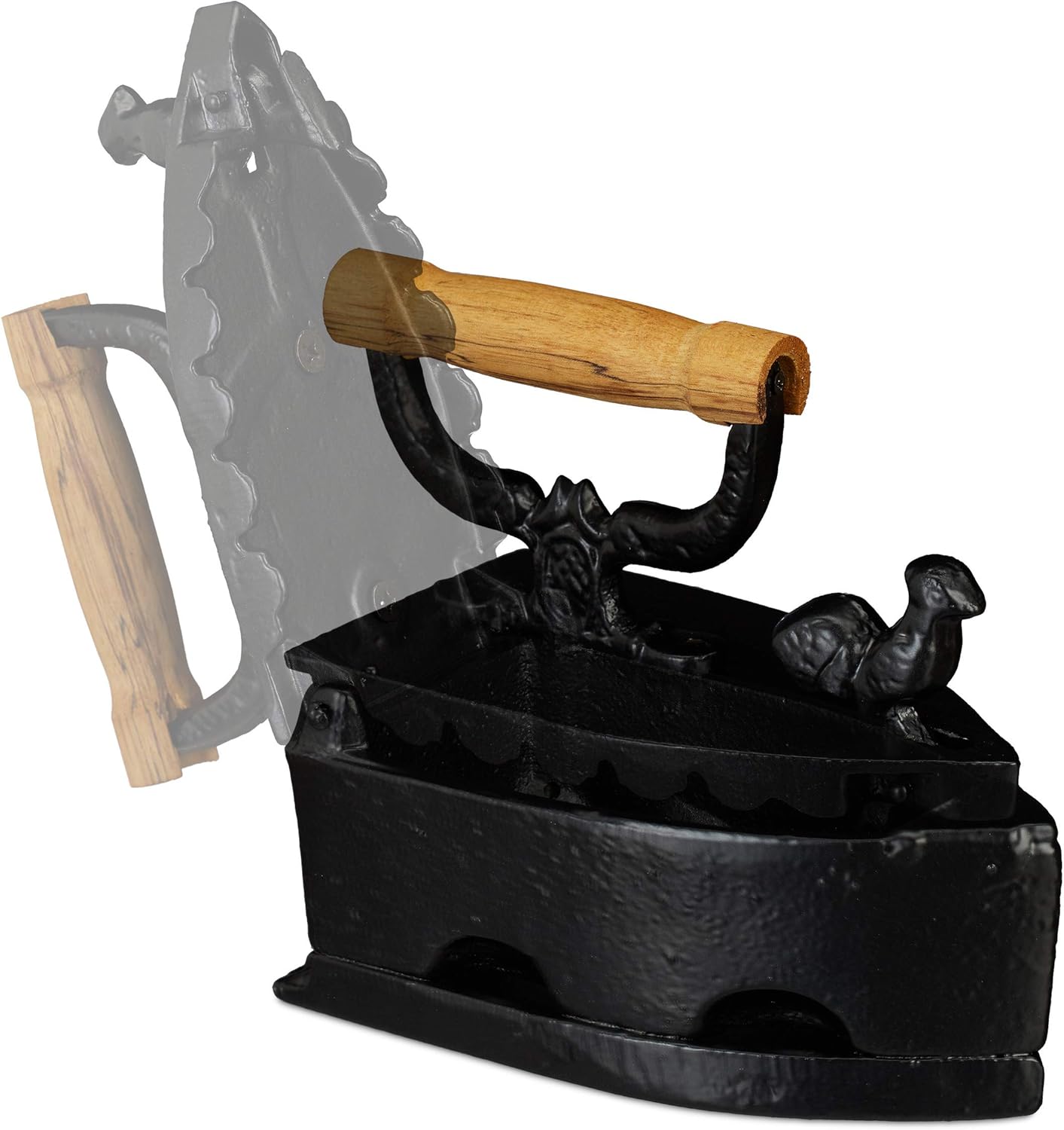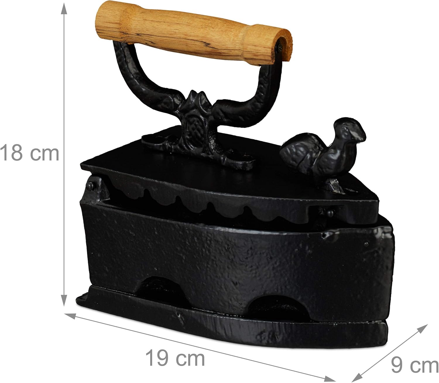 - Gusseisen: Der Corpus des schwarzen Vintage Bügeleisens besteht aus Gusseisen - Rustikale Oberfläche