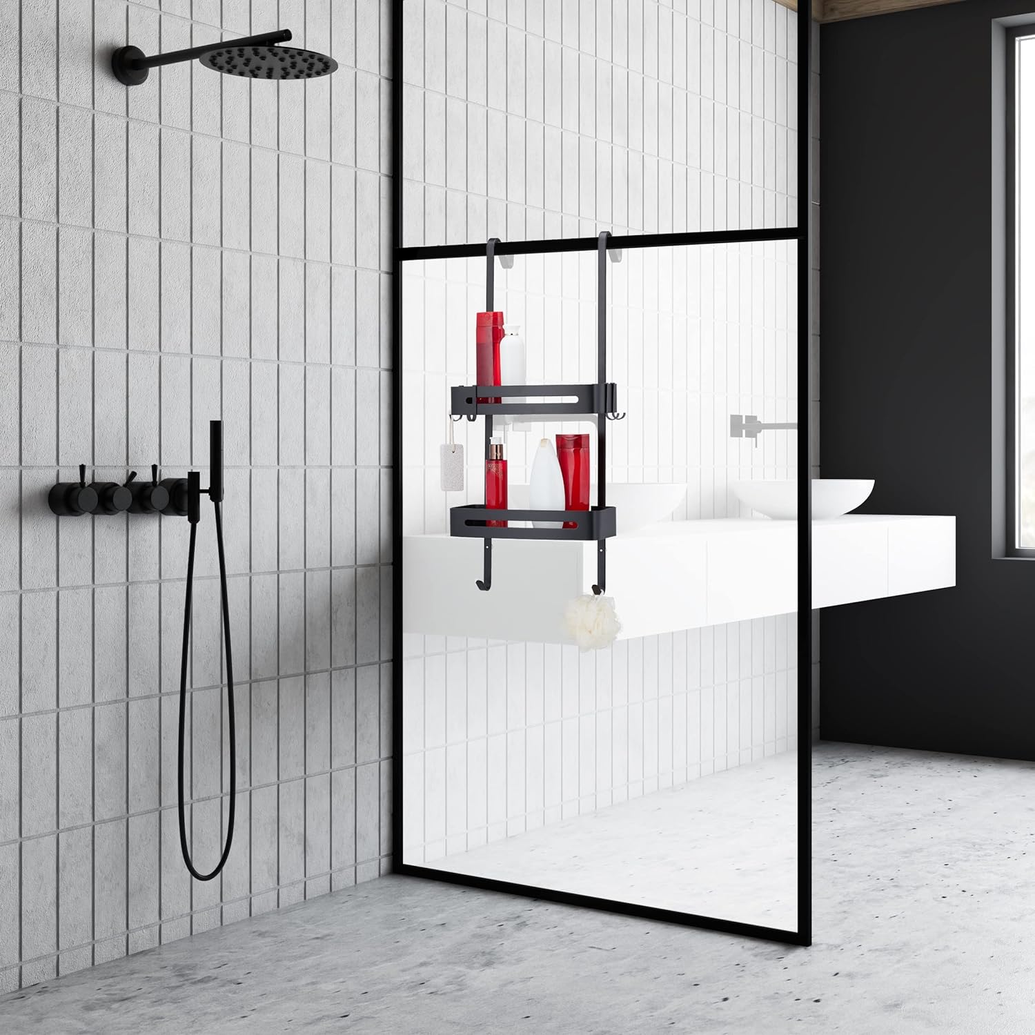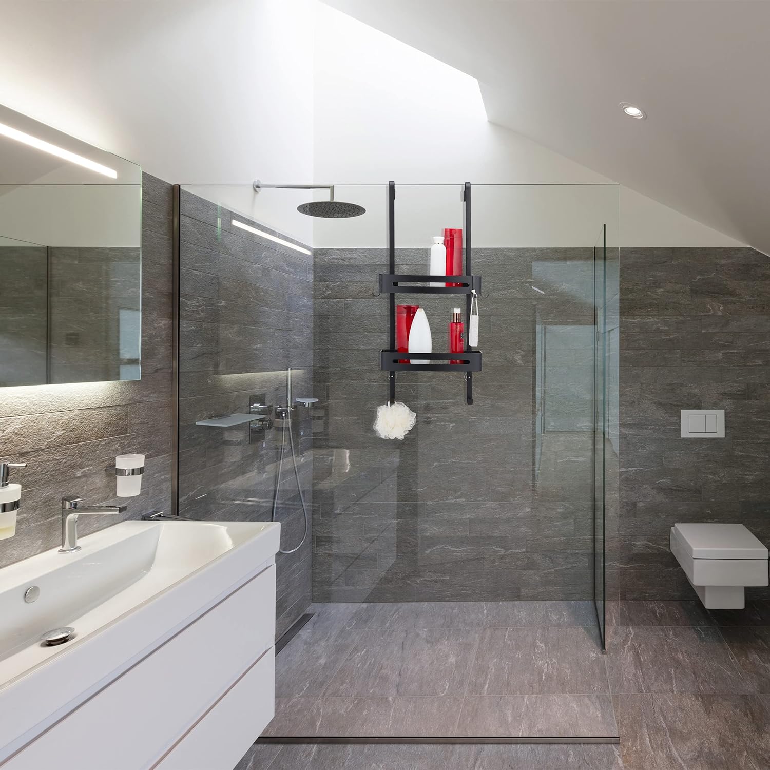 - Stauraum: Schwarzes Duschregal mit 2 Ablagen zur Aufbewahrung von Shampoo, Duschgel, Seife und mehr