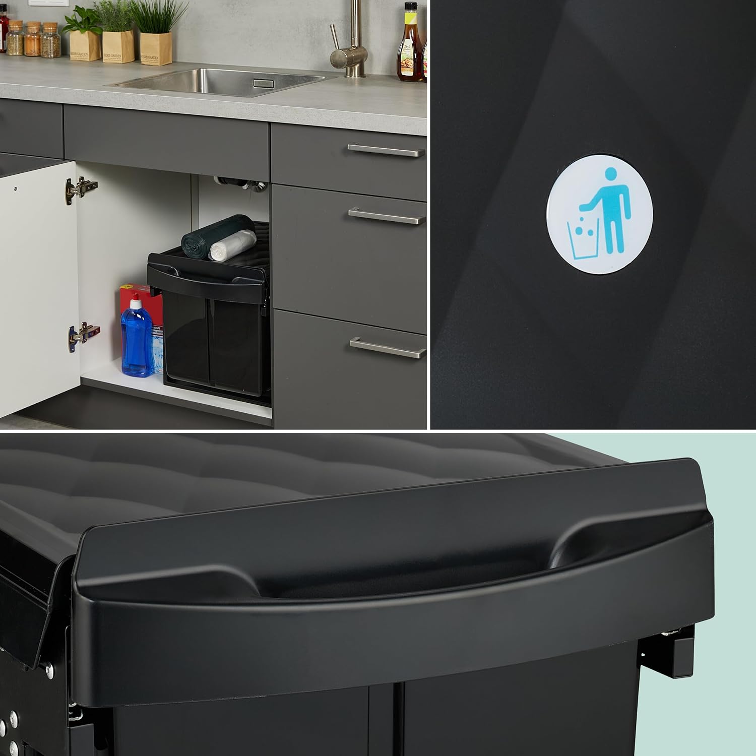 - Platzsparend: Küchenmülleimer zur Montage im Schrank unter der Spüle - Inklusive Montagematerial
