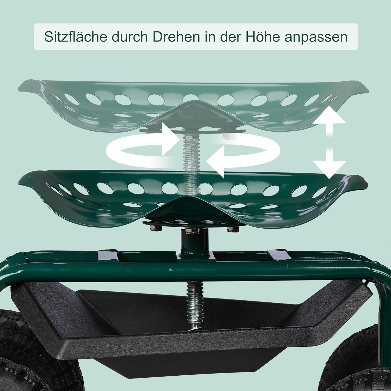 - Höhenverstellbar: Sitzfläche des Gartenwagens durch Drehen in der Höhe anpassen - H: ca. 40–49 cm