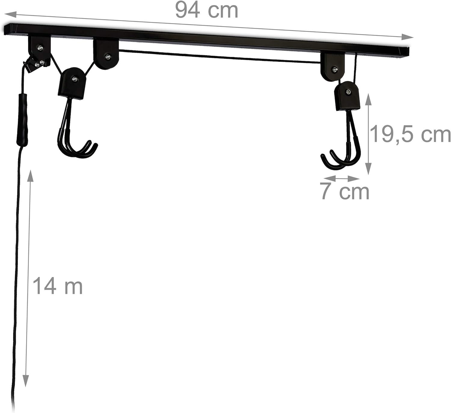 - Mit Seilzug: Fahrrad einfach einhängen und rückenschonend hochziehen - Insgesamt ca. 14 m Seillänge