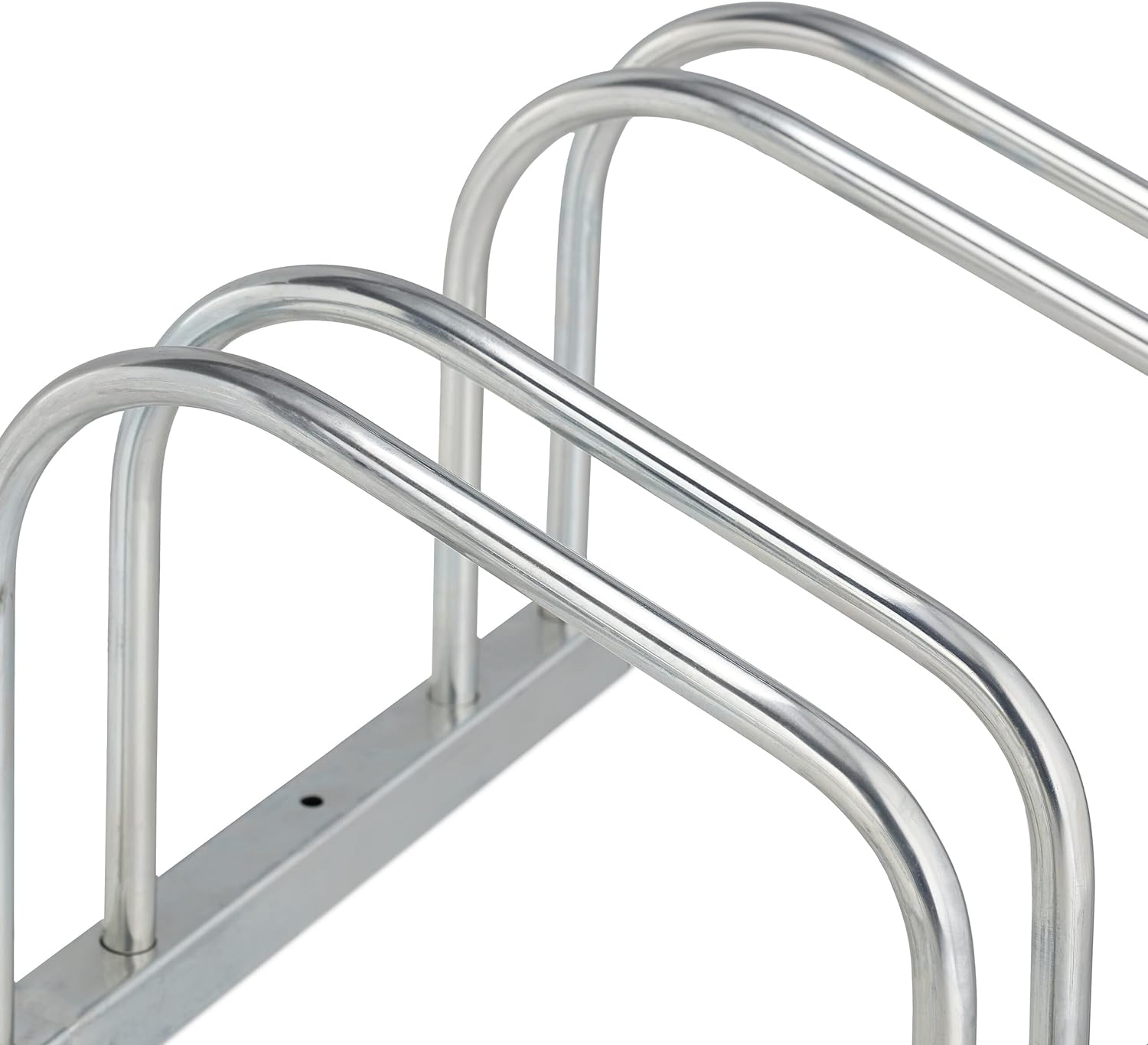 • Robust: Der silberne Fahrradbodenständer ist aus verzinktem, witterungsbeständigem Stahl gefertigt