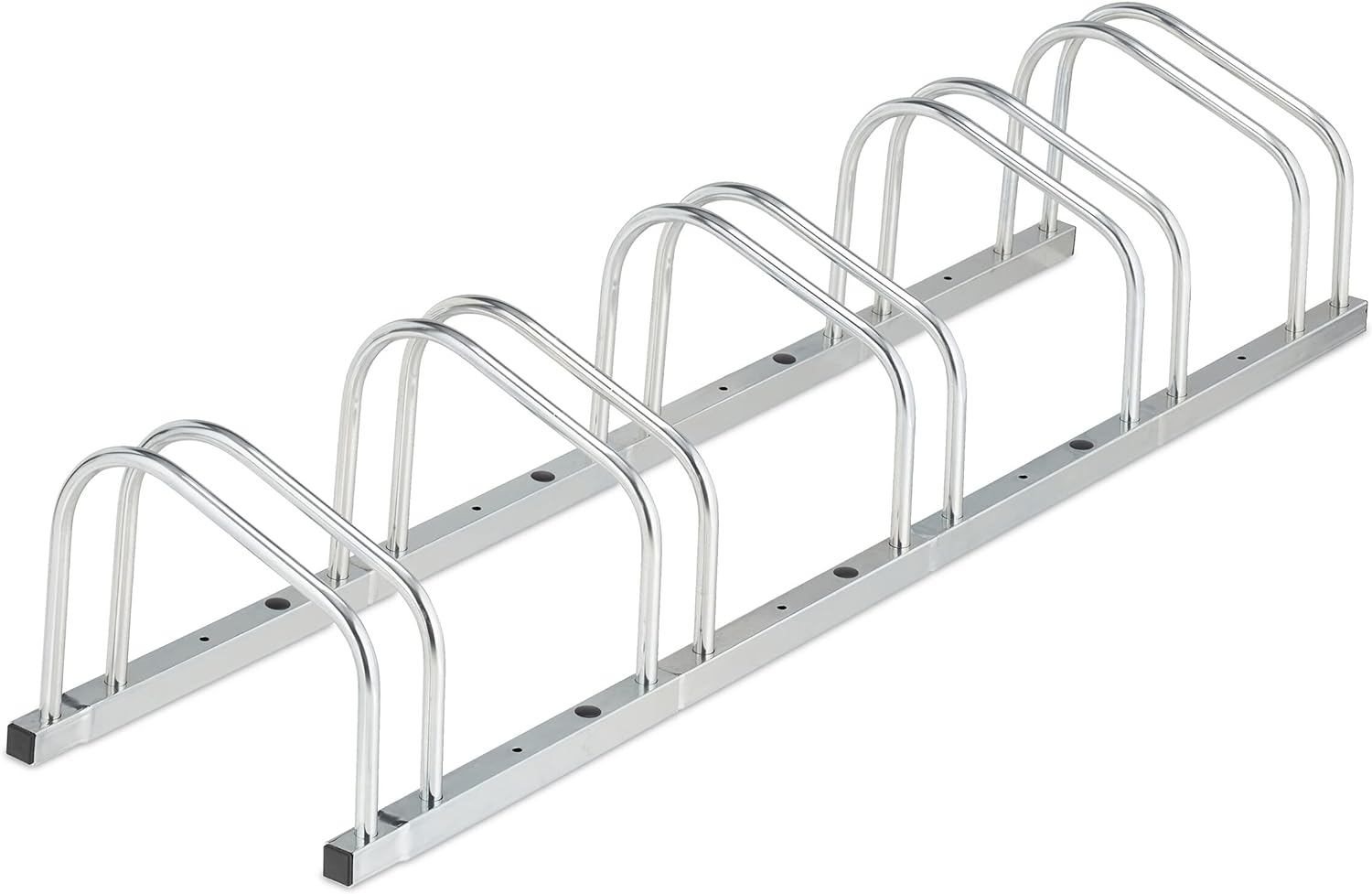 Relaxdays Fahrradständer Boden, für 5 Fahrräder, bis 50 mm Reifenbreite, Metall, Garage, Fahrrad-Auf