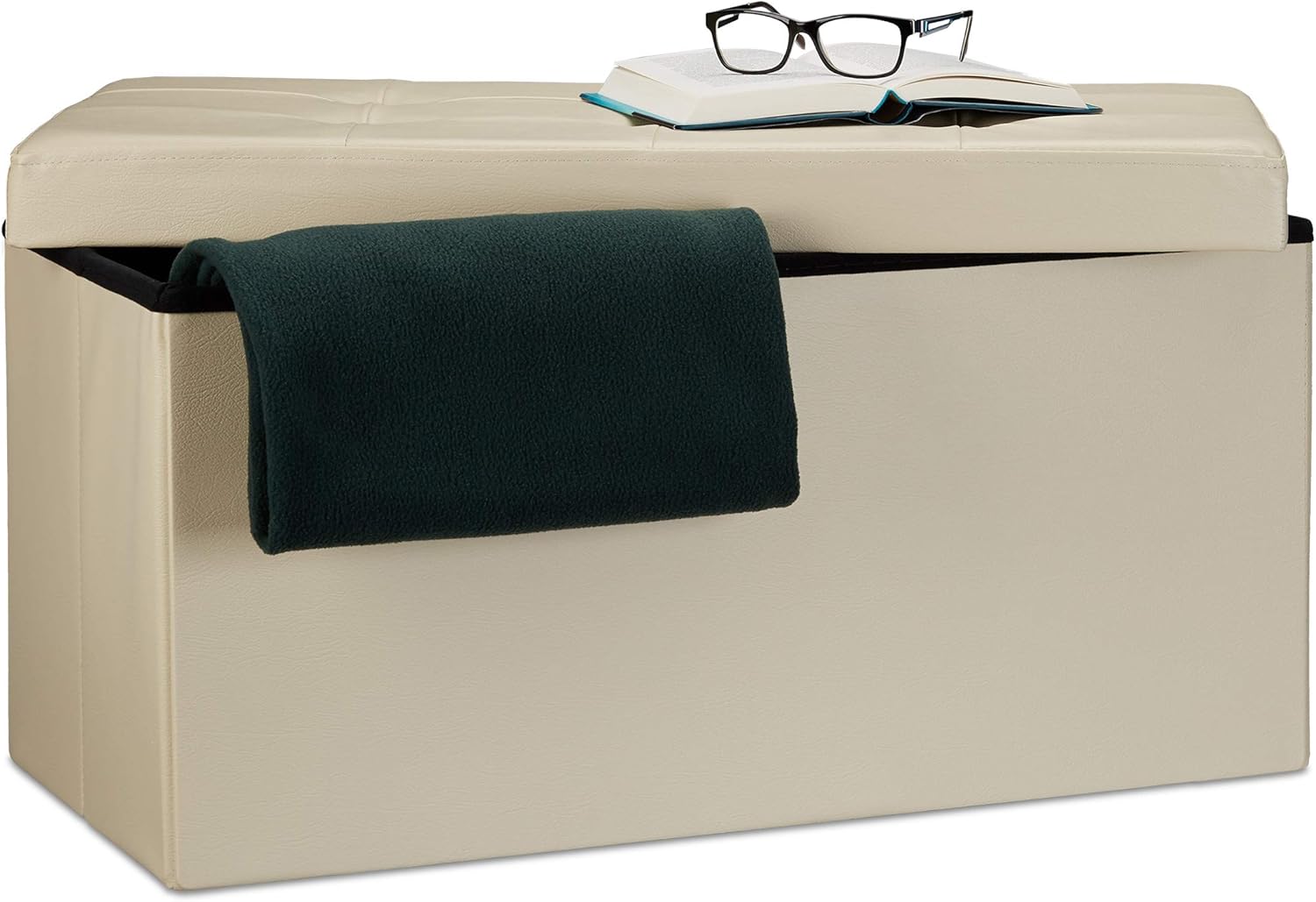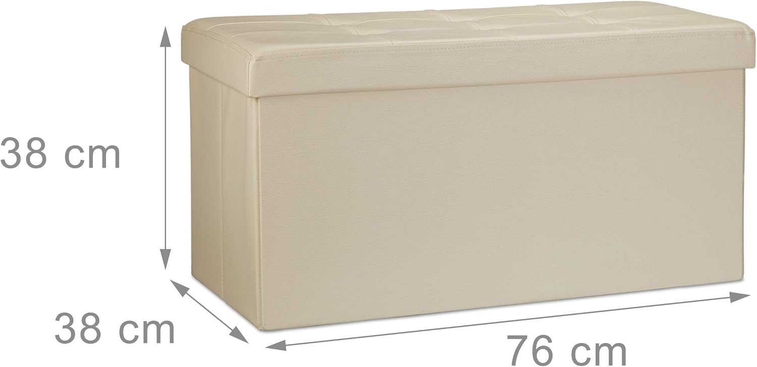 Relaxdays Faltbare Sitzbank 38 x 76 x 38 cm HxBxT, 2-Sitzer m. Stauraum, Kunstleder Sitzhocker 300 k